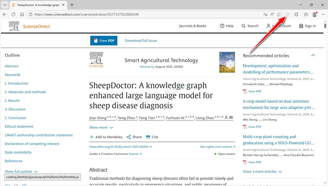 13.尝试打开文献页面,插件图标就会变为文本的样子,点击即可执行提取文献信息到软件的操作。