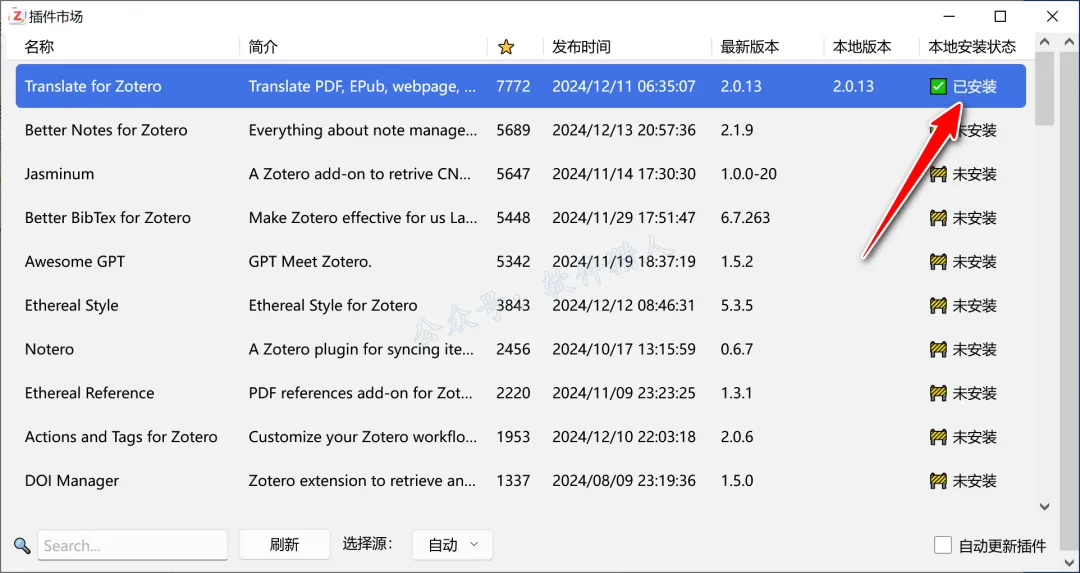为Zotero安装插件市场: