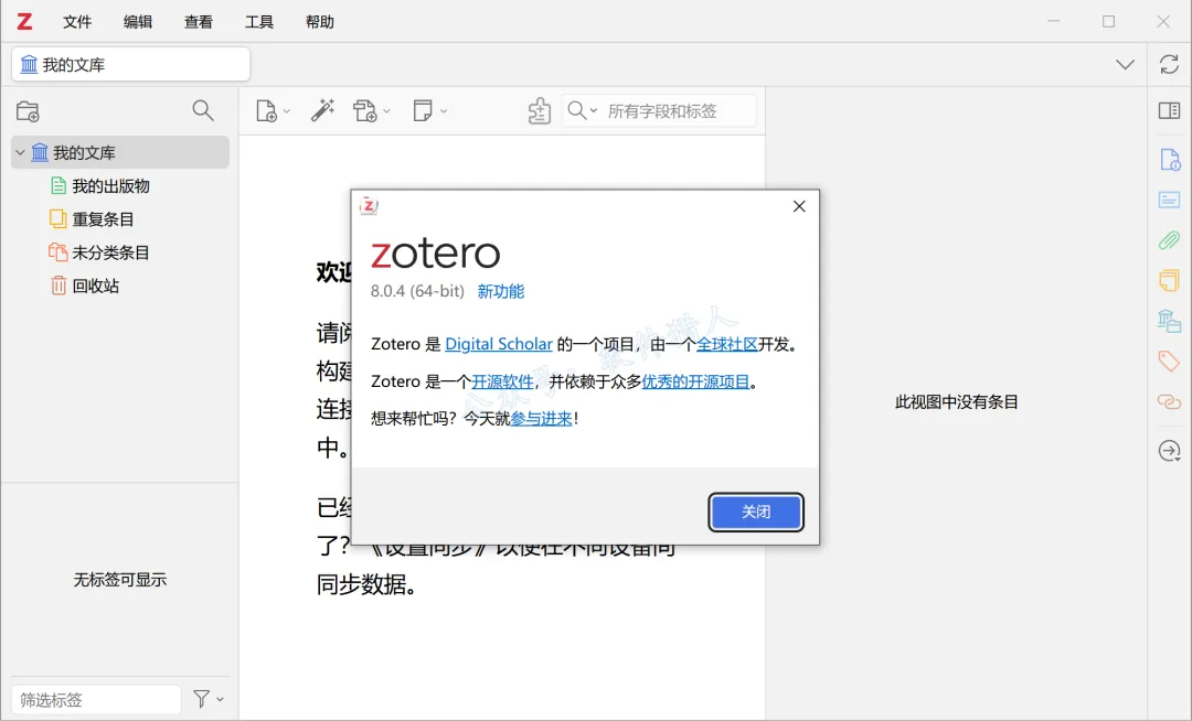 Zotero是开源、免费的文献管理工具,可以方便的收集,组织,引用,和共享文献的工具。
