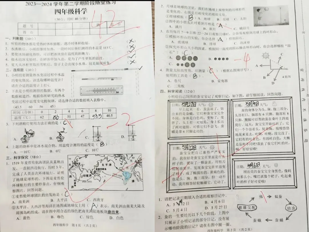 比如有家长晒小学4年级的科学考试成绩,只考了40多分,自己却不着急。