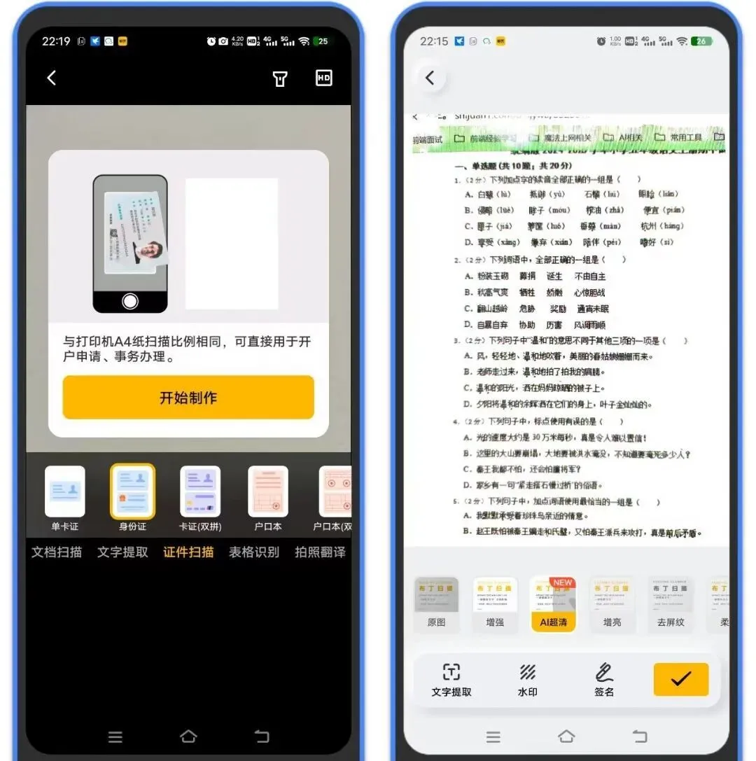 这里可以扫描任意的证件,比如身份证啊,还有试卷啊,都可以,扫描完成之后就可以直接导出为可编辑的doc或者PDF,没有任何问题!