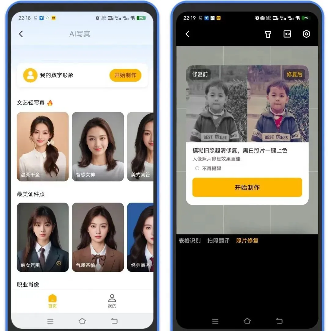 这里还有一个实用的小功能是图片高清修复,这种演收还是有必要的。比如说你做证件照的时候,拍的比较模糊,或者原图比较模糊,那么在这里简单修复一下,会好不少!