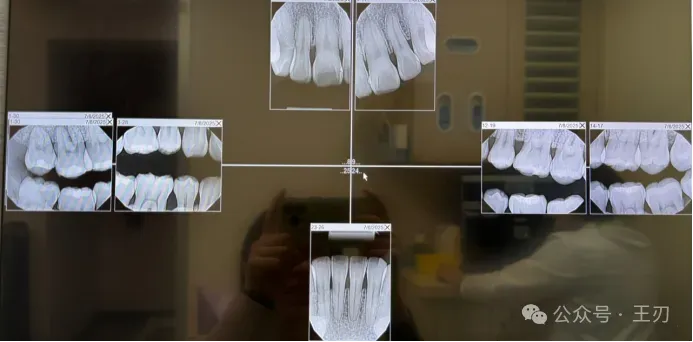 这是该医生给她照的全口咬合翼片,从该组片子上也没有发现特别明显的牙槽骨吸收,所以该位医生再次确认自己的判断–患者没有牙周炎。