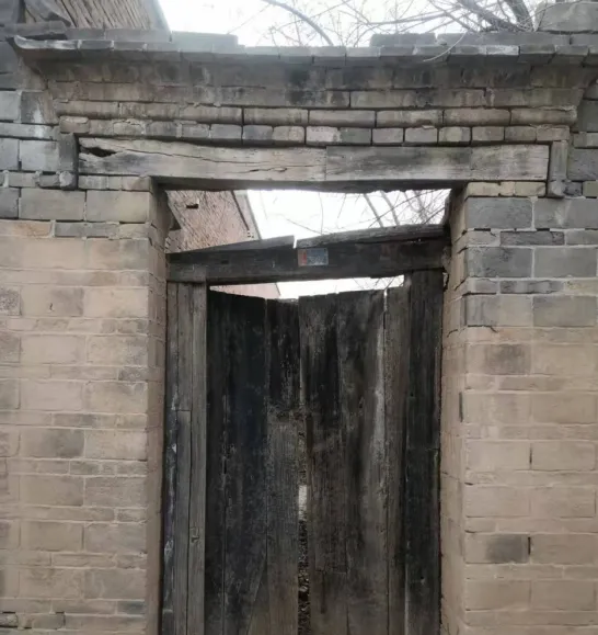 图中这扇老门叫抬梁木门,两扇厚木板并起来,门坎高,门梁上压着几层老青砖,风从缝里钻进来带着湿木头味儿,小时候我踮脚摸那块冰凉的铁门扣,总想学大人那样一推一合,结果总是被门缝夹着指肚,奶奶在屋里喊慢点慢点,别把门轴折了,这门外面一圈槐树影子一晃一晃,年三十贴春联就在这儿,红纸一压住,糯米浆往上一抹,门面立马亮堂了。