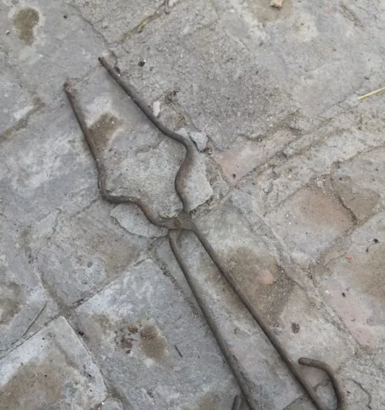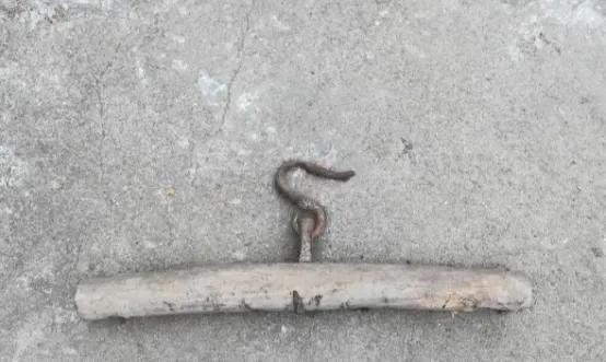 这个木横杠儿叫扁担钩,中间一枚铁S钩,挑担的时候把桶耳或者绳圈往上一搭,省事省力,赶集回来的路上,爸在前头挑,我在后头扶着桶沿,水面晃一圈又一圈,月亮落进去像被切成几瓣,扁担肩窝磨得生茧,回家把钩子往屋檐下一挂,第二天出门又能顺手提上,后来三轮车、电动小卡遍地跑,扁担钩躺在门口台阶下晒得发白。