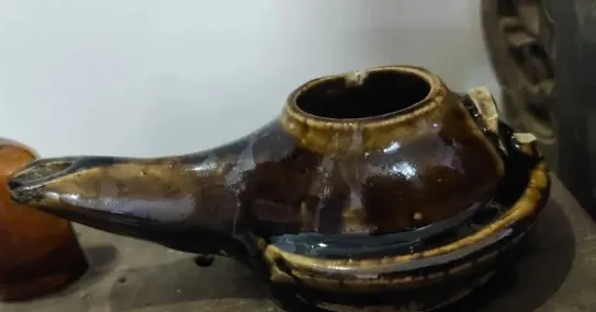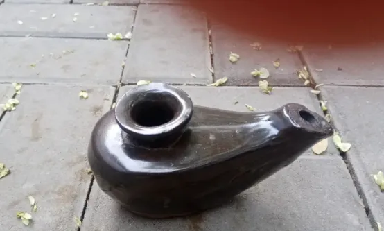 这个像小葫芦的家伙叫棉油灯,陶胎上釉,圆肚小嘴,里头倒上棉籽油或者菜籽油,布条绞成灯芯从嘴里探出来一点点,点着后灯苗就像黄豆粒那么大,光不旺,但一张炕桌凑过来人也就不慌了,写作业的把本子斜着摆,影子跟着手腕走,妈妈一边纳鞋底一边抿一下灯芯,亮就顺了一分,后来煤油灯、再后来电灯一开,棉油灯从灶台后边被翻出来的时候,壳儿上全是岁月磨的油亮。