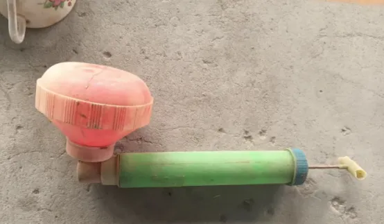 这个塑料身子的叫手压喷药壶,一头是小罐子装药水,长筒里来回抽气,手一捣咕就能喷出一股细雾,七八十年代院里鸡鸭鹅一多,夏天苍蝇蚊子招呼得凶,就得靠它,妈妈在院里一边喷一边嘱咐我别往前凑,小孩子鼻子小,呛一口辣得直掉眼泪,可等到傍黑没了蚊子,饭桌边安安生生,心里又觉得它真顶用,现在家里一按电雾化就完事了,这玩意儿也就被扔到柴房角落落灰了。