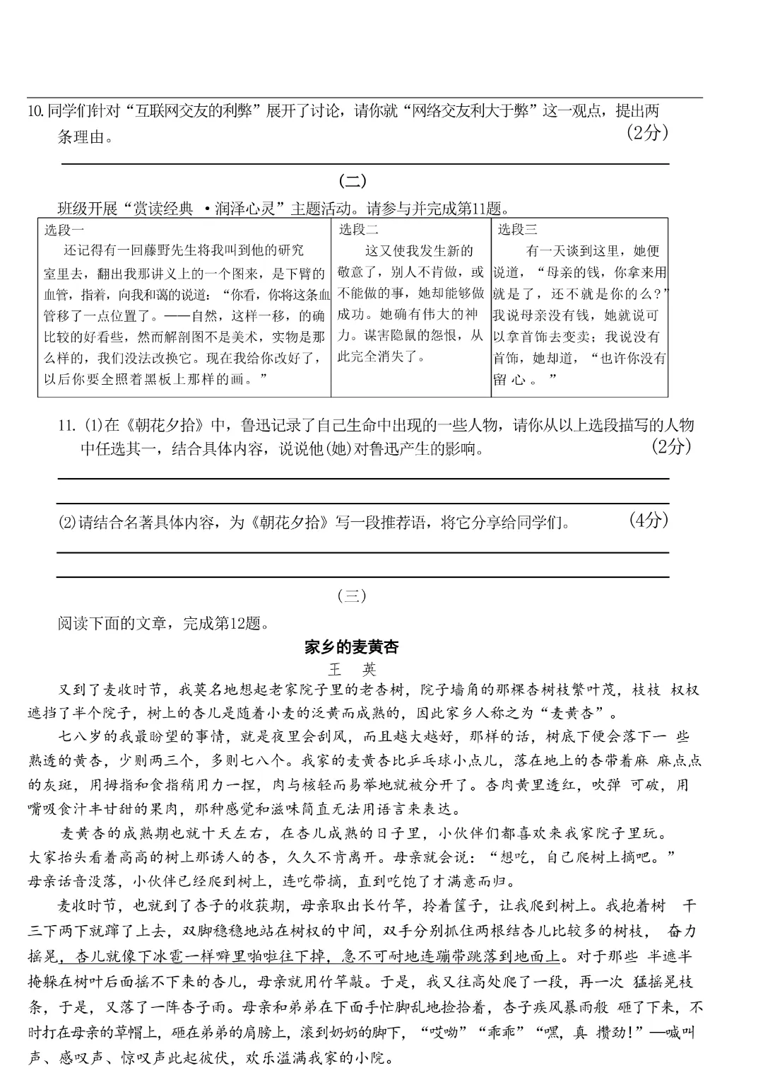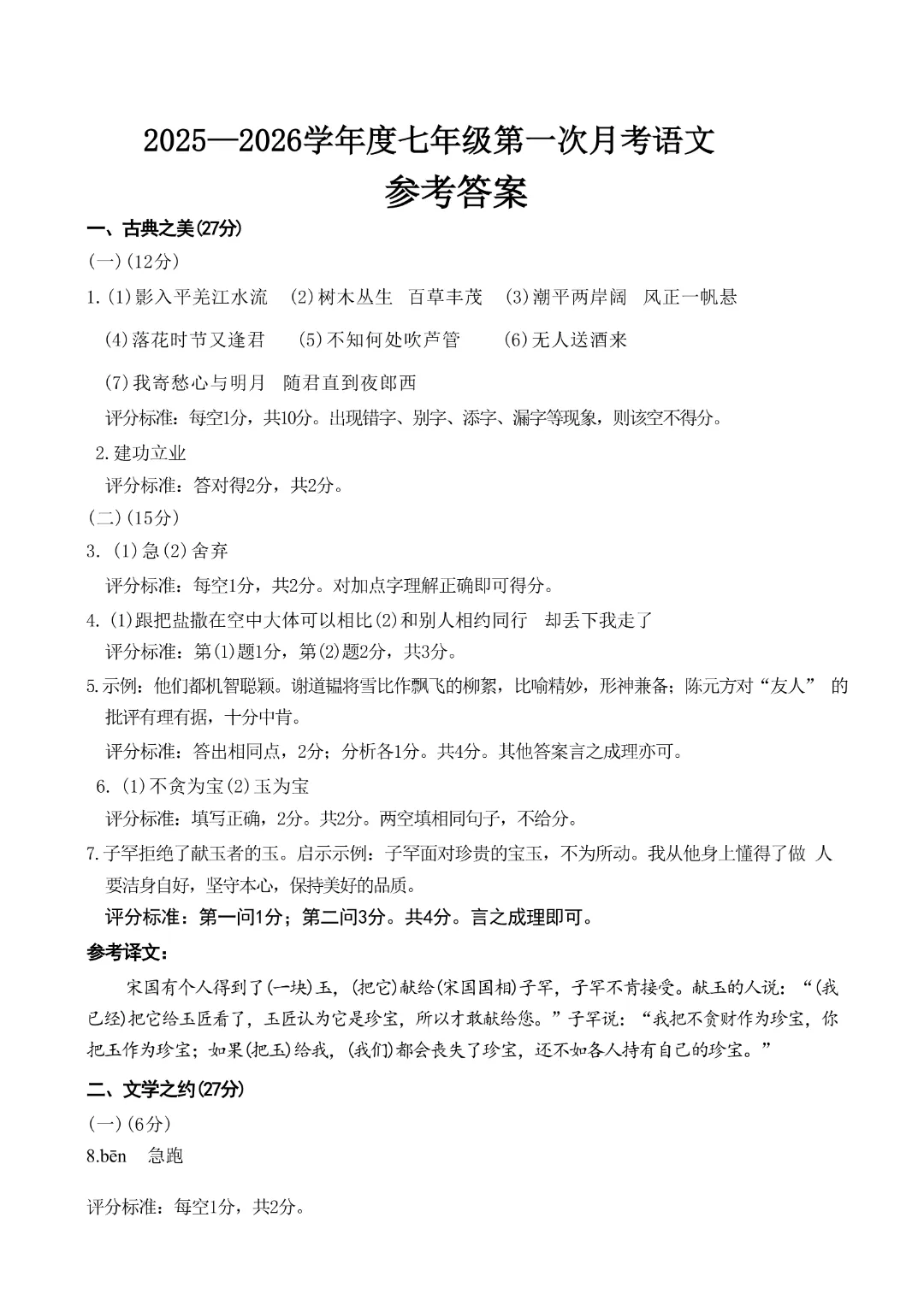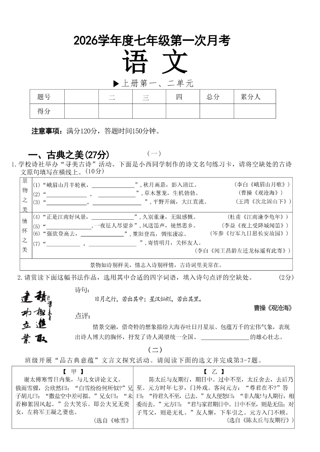 今天分享的是:《七下语文》2026年新七年级(下)语文【第一次月考综合测试卷】附答案 完整电子版可打印这份月考试卷,贴合单元教学进度,侧重基础知识与核心素养的综合检测,帮助孩子检测梳理阶段学习成果,牢固基础知识