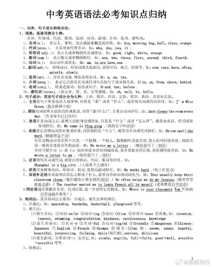 挑战一个月背完初中英语语法,直接背!(可打印)