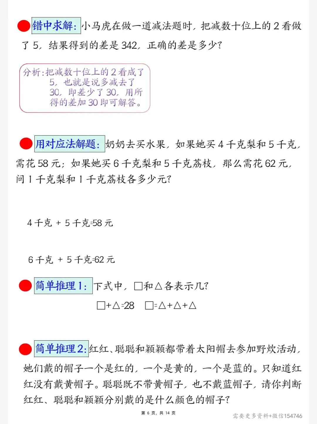 三年级下册数学易错思维应用题专项(电子版PDF),电子版可打印