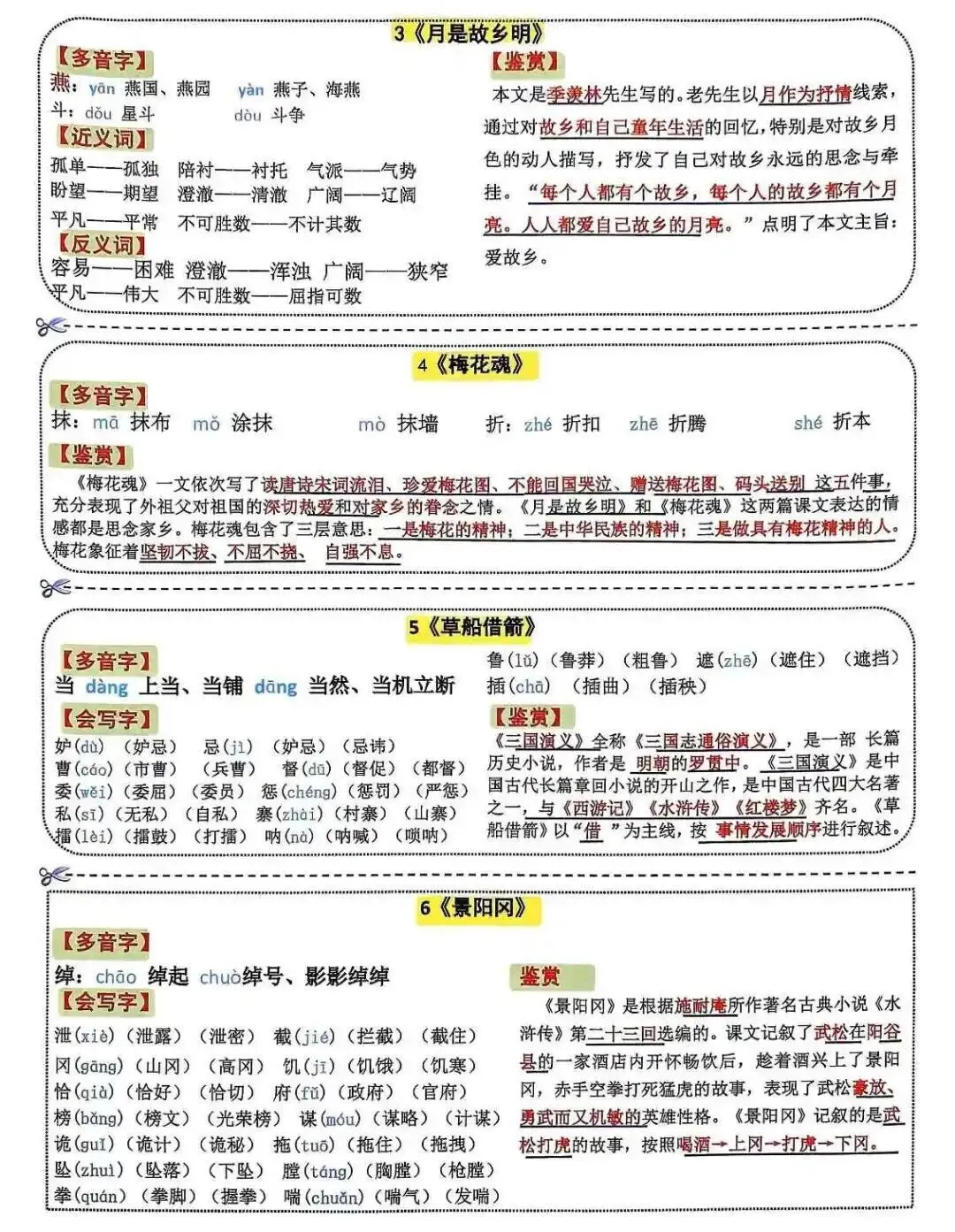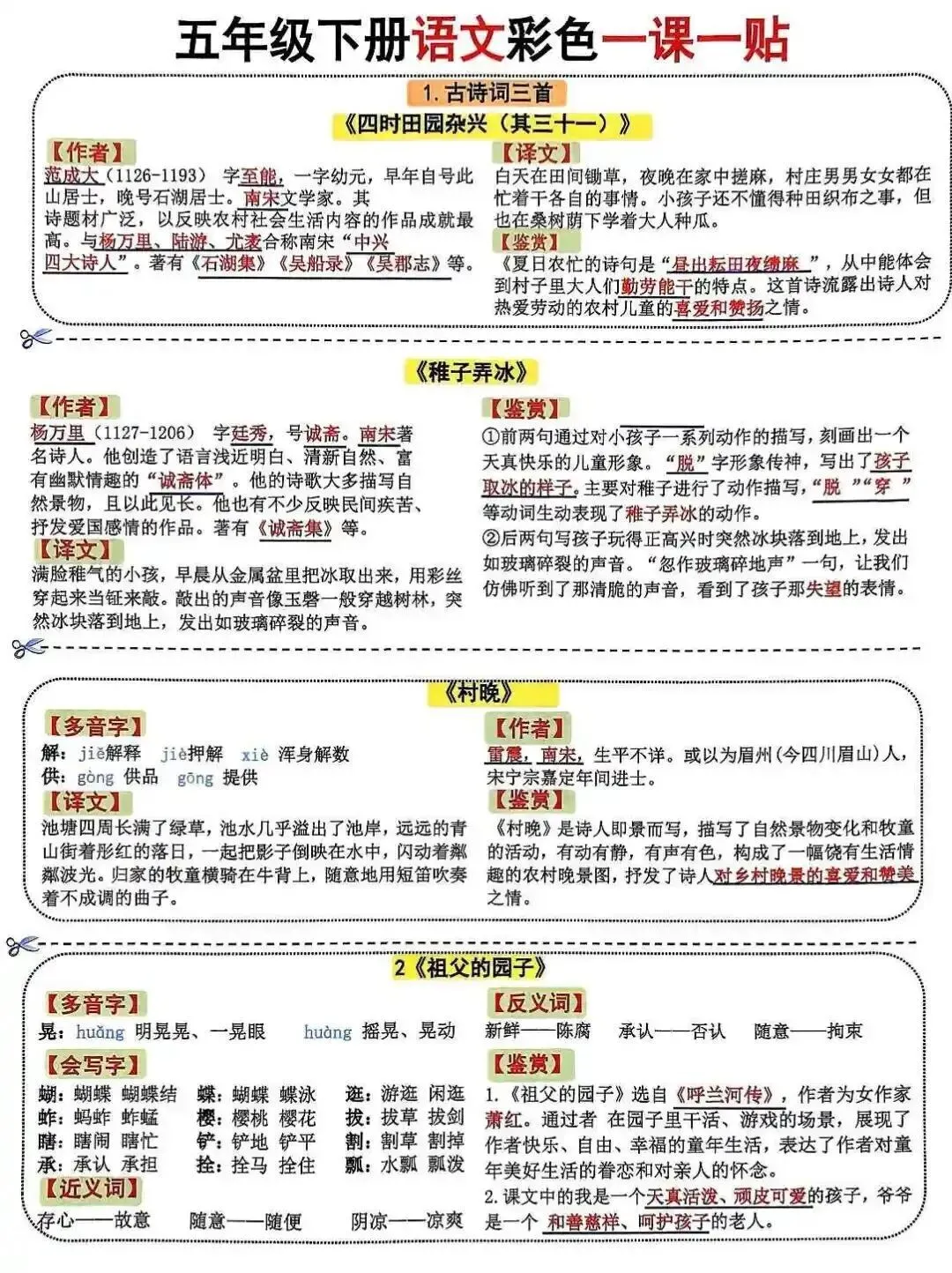 五年级下册语文 彩色一课一贴 | 可打印