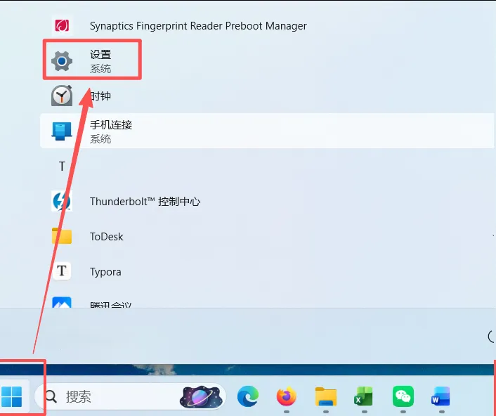 点击电脑左下角的「开始菜单」,打开「设置」(齿轮图标)