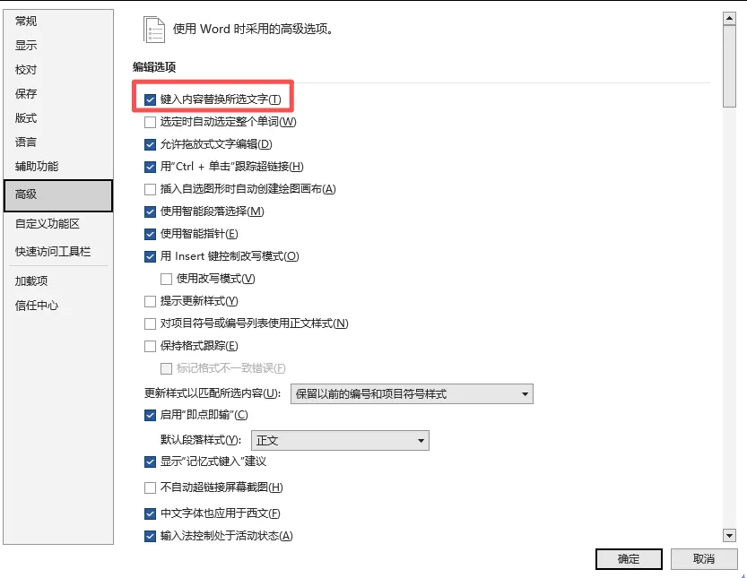 还有一种情况,是Word里的「键入内容替换所选文字」功能开着,不小心选中了文字,一打字就把之前的内容替换掉了,很多朋友以为是光标乱跳,其实是这个原因。