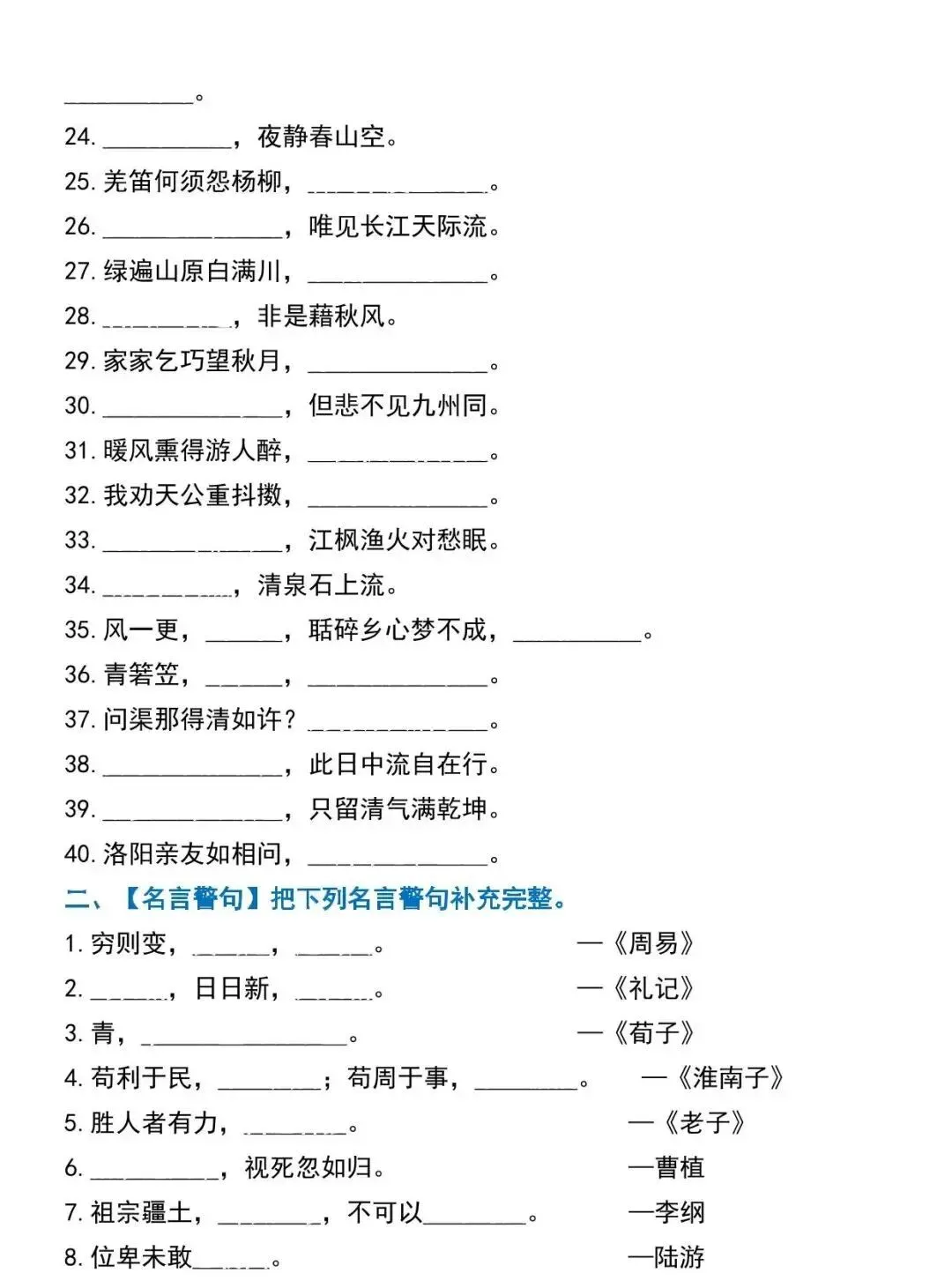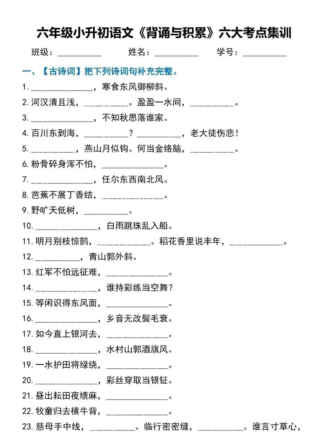 六下语文【背诵与积累】六大考点集训 | 可打印