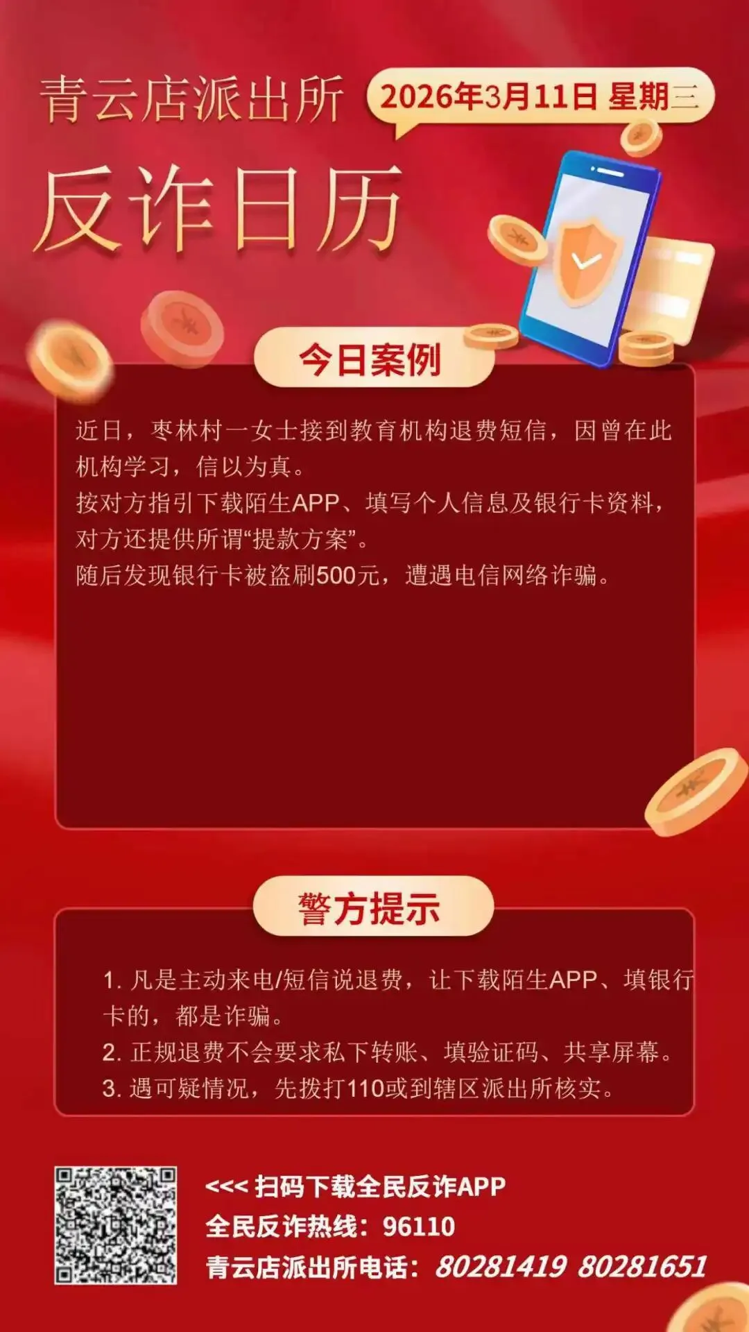 反诈宣传 | 向陌生APP提供个人信息,枣林一女士被骗500元!