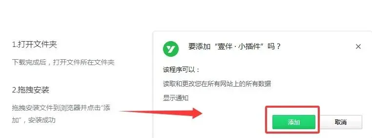把下载好的插件文件,直接拖拽到扩展程序页面里,浏览器会自动识别并开始安装。安装时会弹出权限确认对话框,点击“添加扩展程序”,等待几秒就安装成功啦!