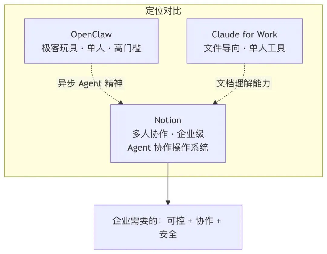 企业需要的不是更疯狂的 Agent,而是更可控的框架。这也是 Notion 认为自己有价值的地方——继承 OpenClaw 异步 agent 的精神,加上多人协作、企业级权限和安全。