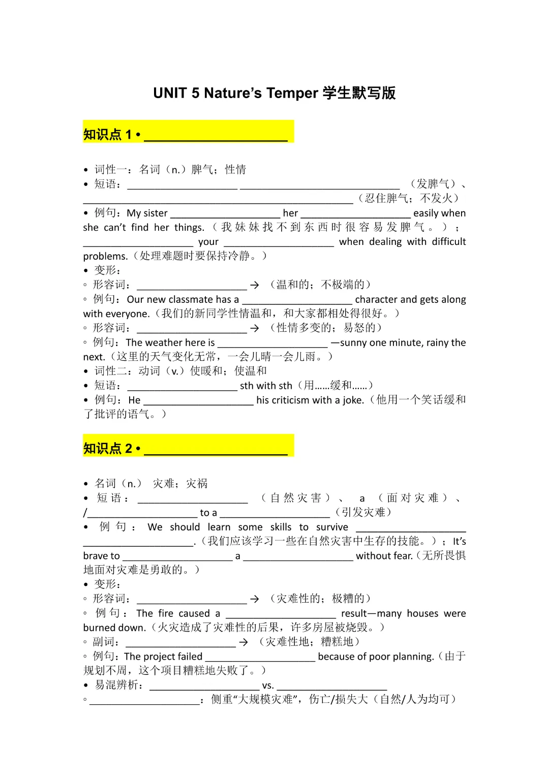🌟今天给家长们分享的是:26春八年级下册英语《 Unit 5 Nature.知识点默写单》《人教版》完整高清电子版可打印