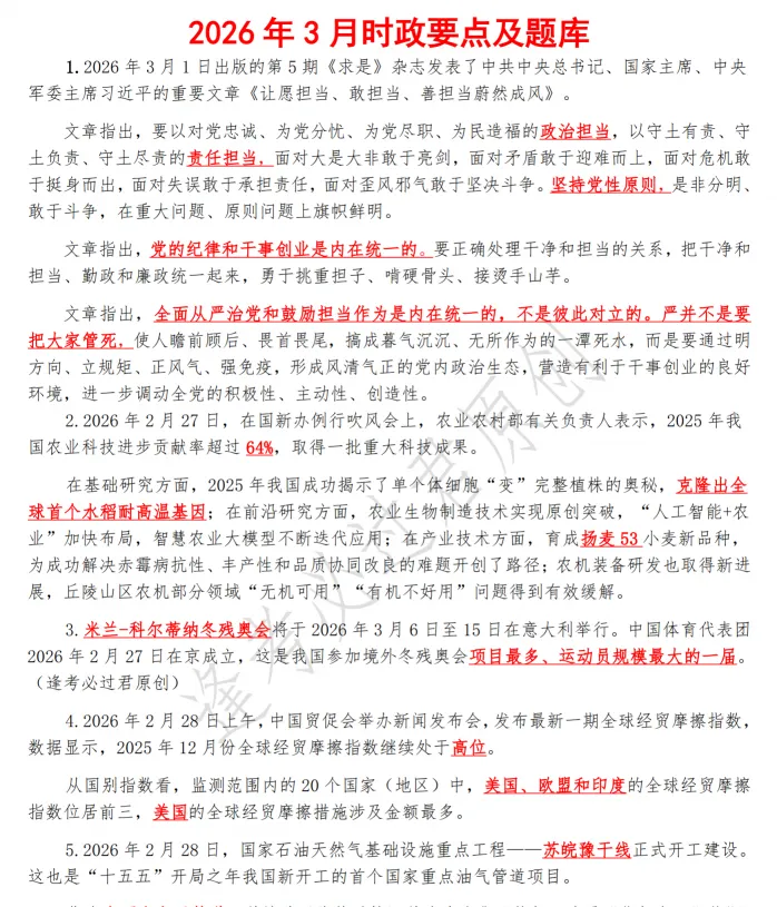 考前必看!《2026时政考前预测考点》(2026年3月新更)