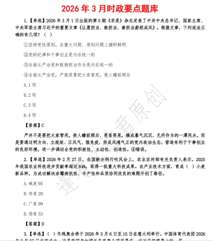最新版!全年时政要问及1500题(2025年1月-2026年3月)2026年3月10日新更
