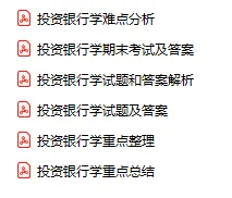 今天分享的资料是「0784-投资银行学」电子版+学习笔记+知识点总结+期末考试重点+复习资料+习题集及答案+名词解释+历年真题试卷及答案+题库及答案+复习重点+思考题及参考答案+公式总结+考试重点基础题+知识总结+高清PDF可打印+免费分享!