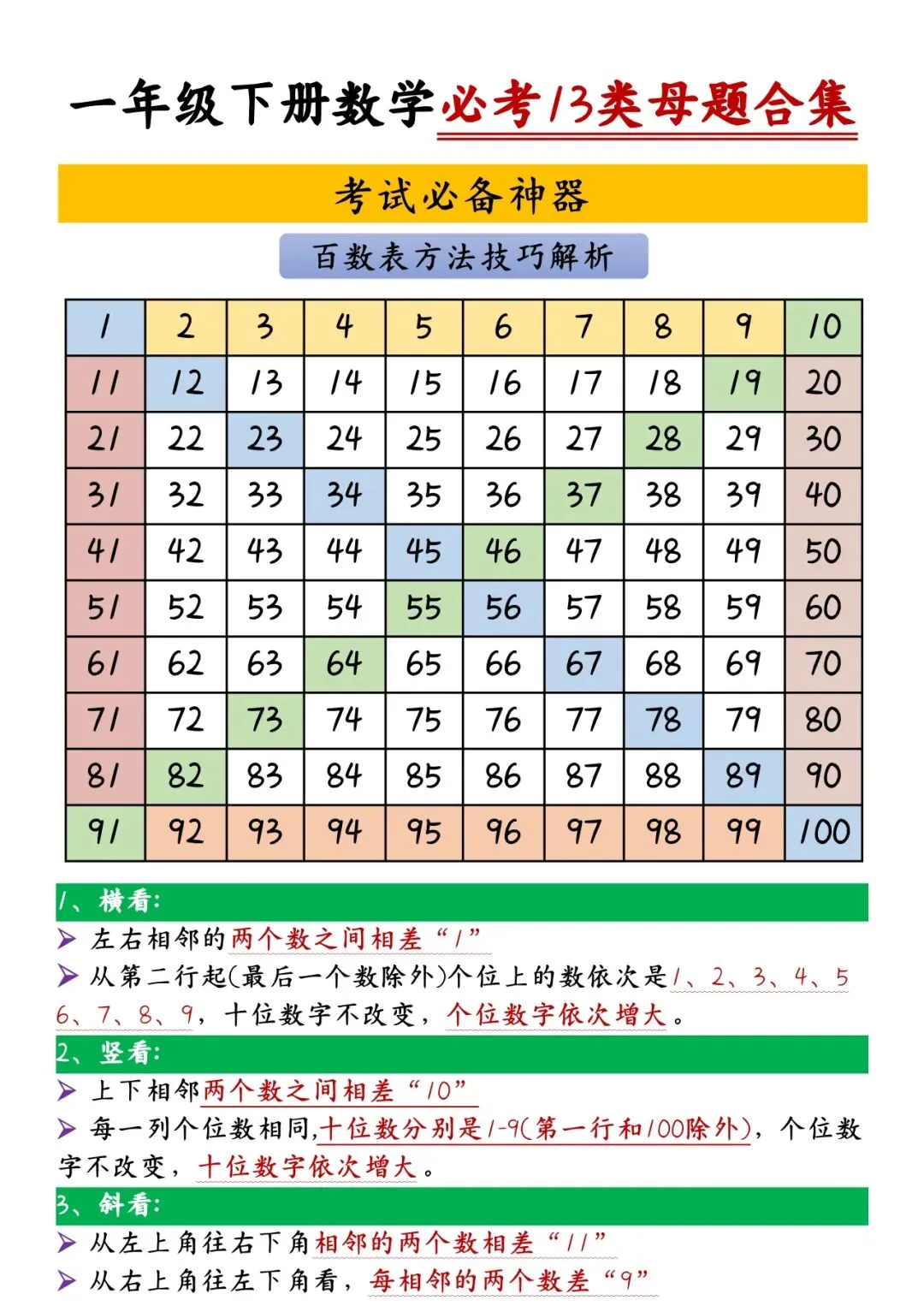 一下数学专项13【百数表问题】