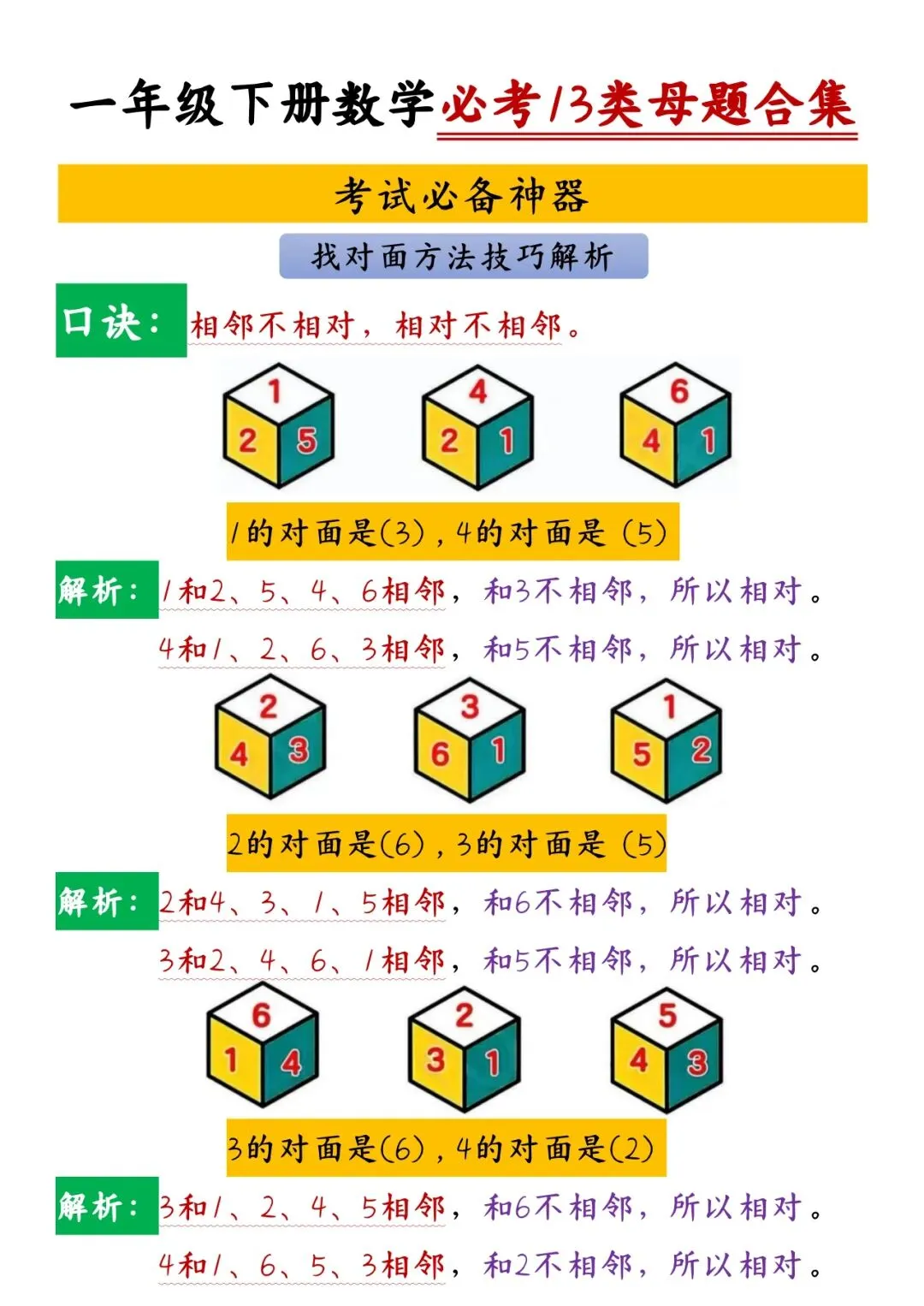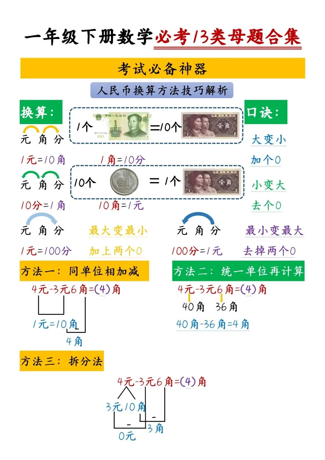 一年级(下)数学彩色必备课课贴