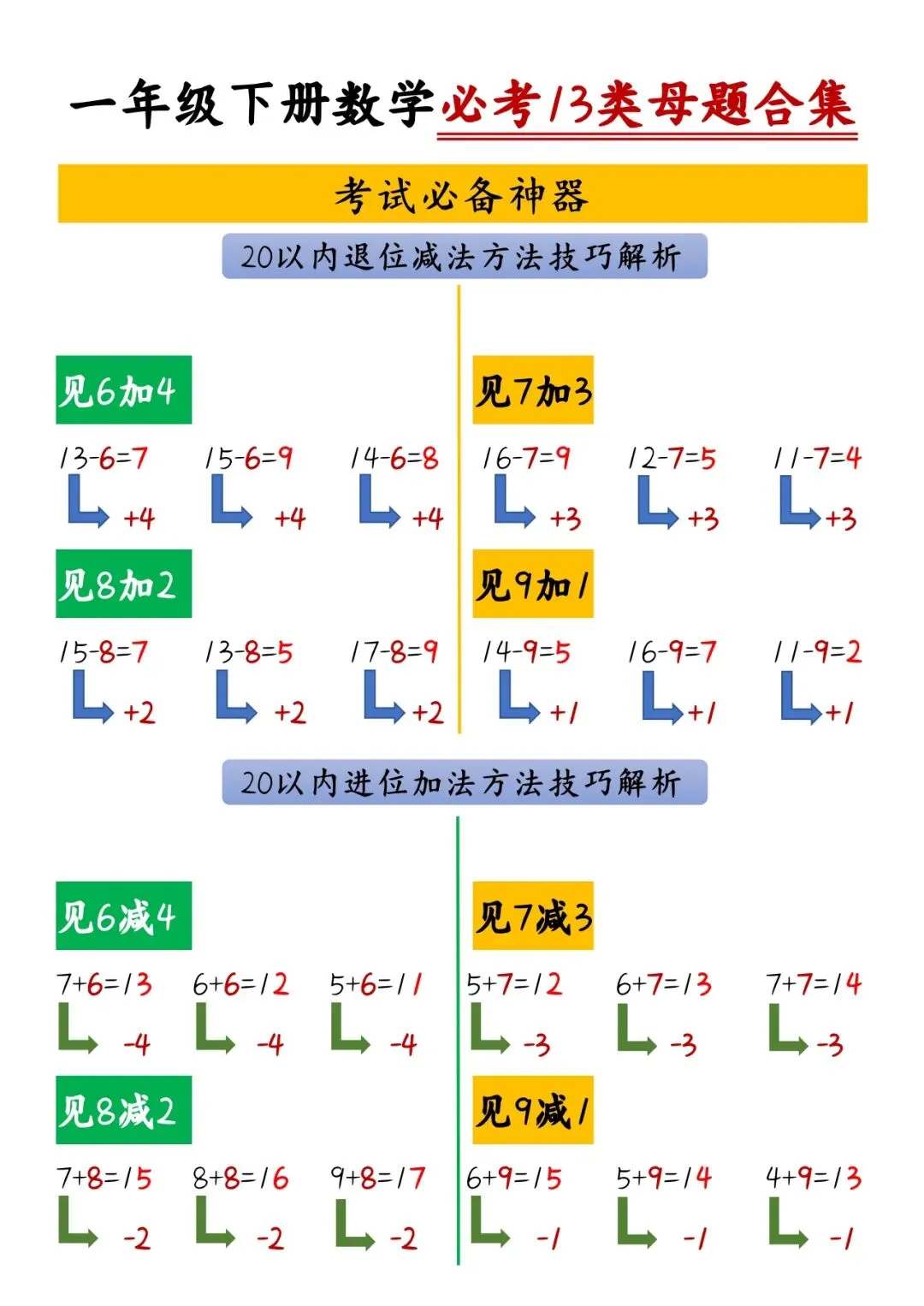一年级(下)数学必背公式汇总