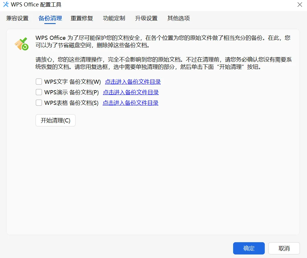 如果你想把备份清掉,可以在这里勾选对应项,点“开始清理”。后续如果电脑卡顿,记得回来重新清理备份。