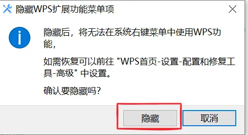 隐藏时会弹出确认框,点“隐藏”就行。