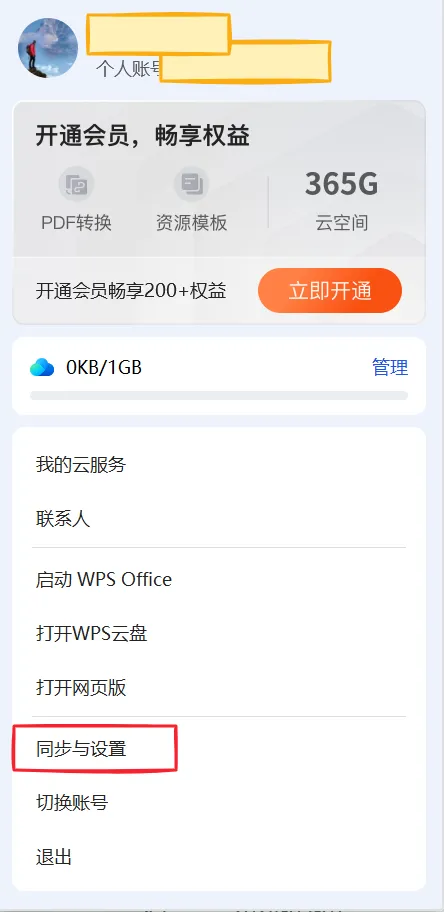 点击同步与设置,云盘设置全部关闭。