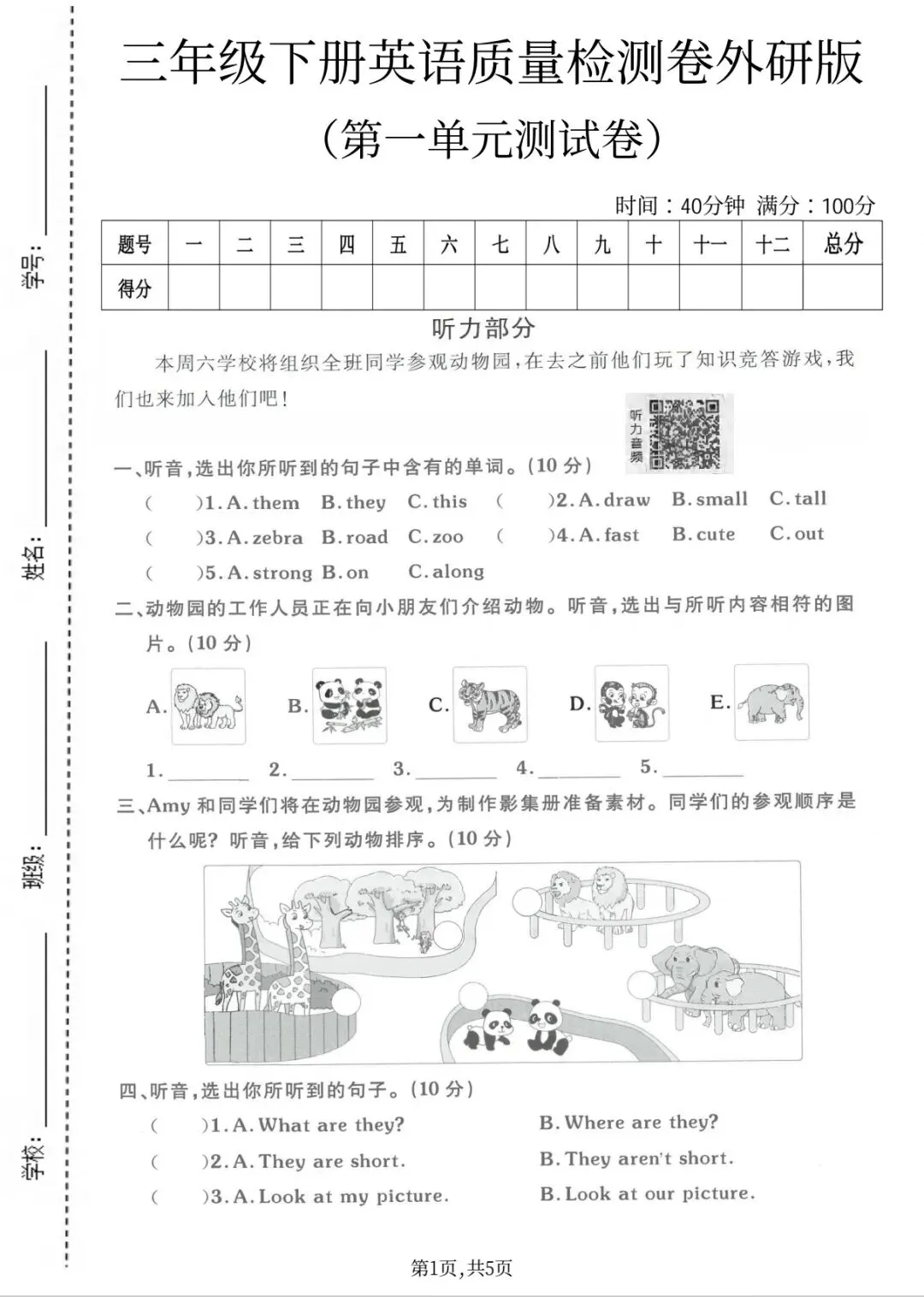 试卷立足课标、覆盖核心考点,侧重基础运用与能力培养,适合单元小结、课堂测评与家庭巩固。