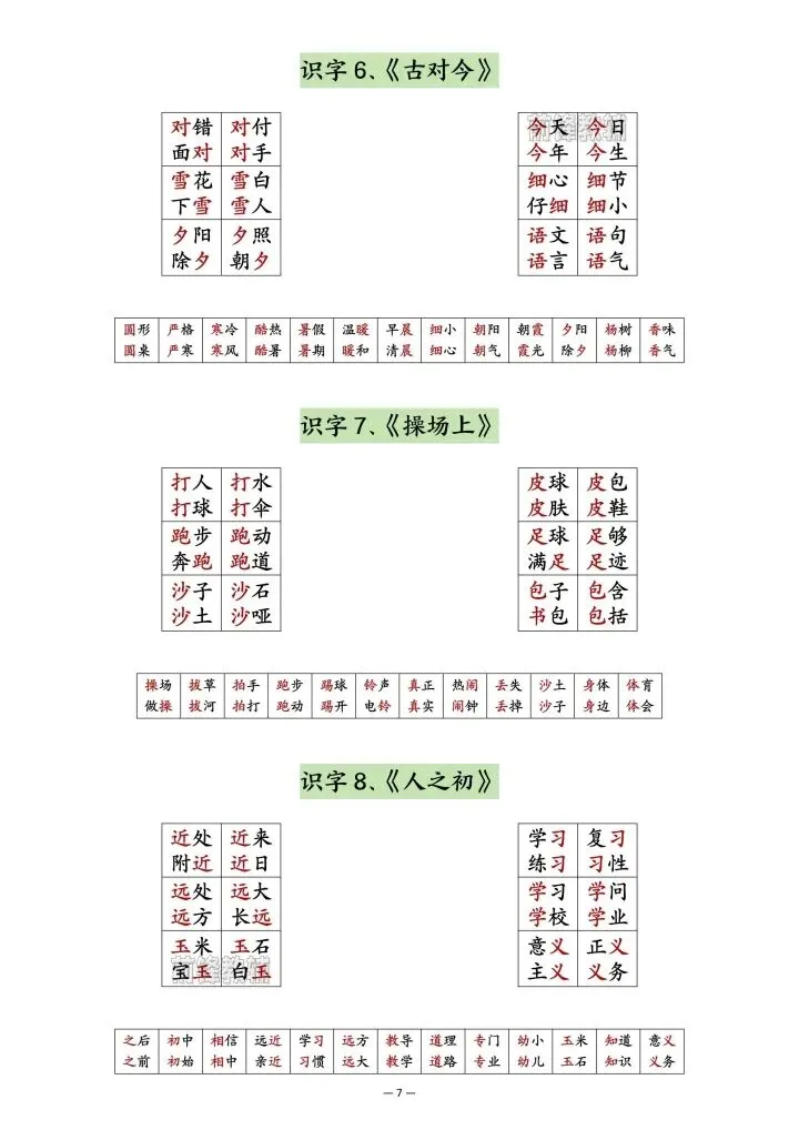 26年新版一年级下册语文《组词小贴贴》,共10页,电子版可下载打印!涵盖全册课文生字组词、语文园地重点词汇,精选考试高频易错字词,精准对标期中考点,是孩子考前强化字词基础、规避丢分的绝佳资料。需要的家长抓紧领取,给孩子打印练一练,轻松应对期中考试!