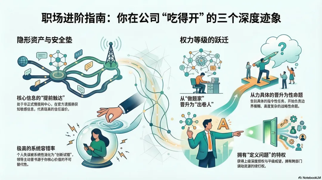 当你拥有了信息特权、高容错率和资源调配权时,你就不再是公司这台机器上的一个可替换零件,而是成为了参与制定规则的操盘手。