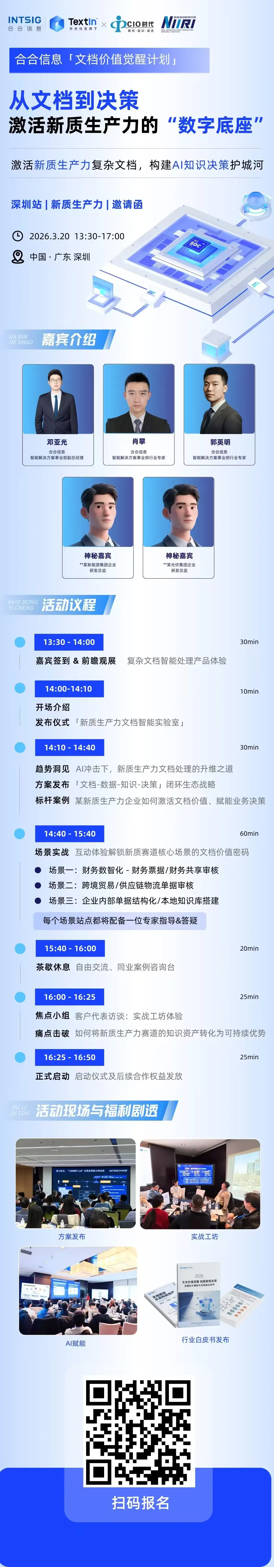 诚邀您参加3月20日深圳 “合合信息·行业文档价值觉醒计划——新质生产力文档智能实验室” 闭门论坛。本次活动专为制造业痛点设计: