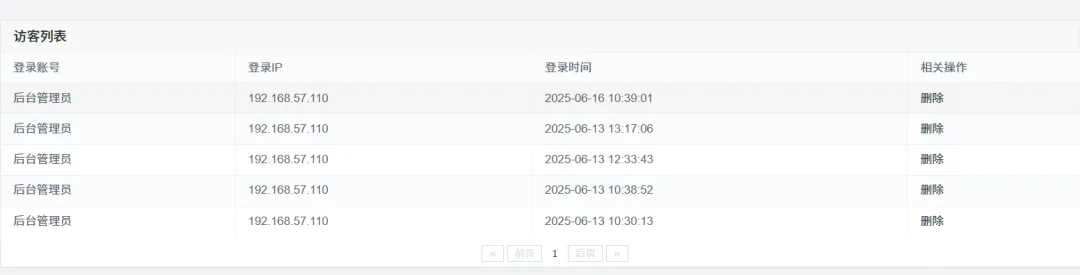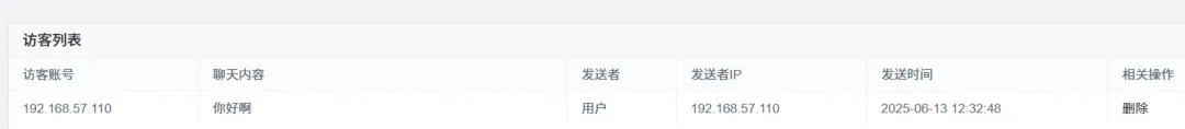 <td>访客账号</td><td>聊天内容</td><td>发送者</td><td>发送者IP</td><td>发送时间</td><td>相关操作</td>
