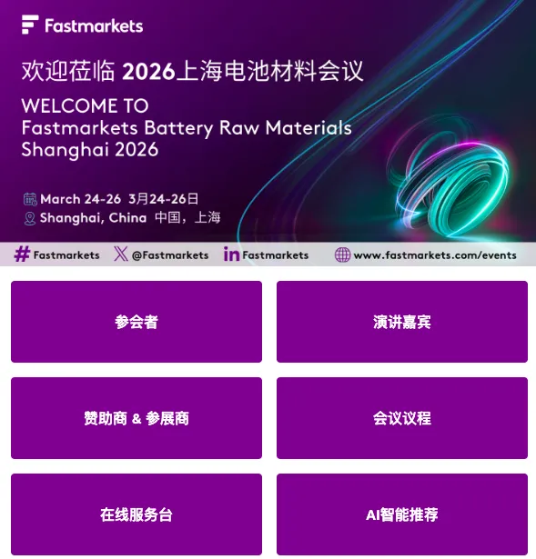 距离 2026 Fastmarkets 上海电池材料会议开幕仅剩最后2周!