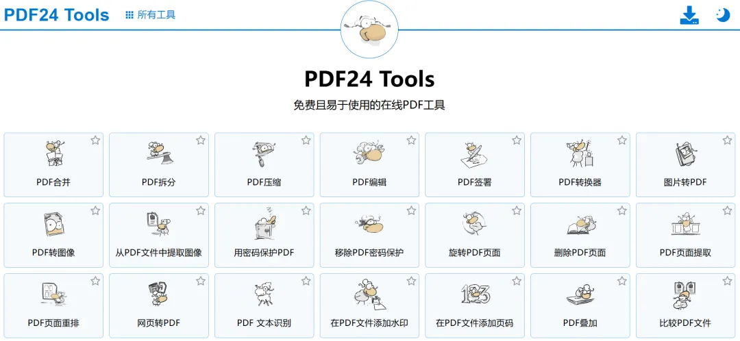 PDF24 Tools是免费无限制的在线PDF工具,全平台适配,一站式搞定所有PDF处理需求,操作零门槛,办公效率直接拉满!