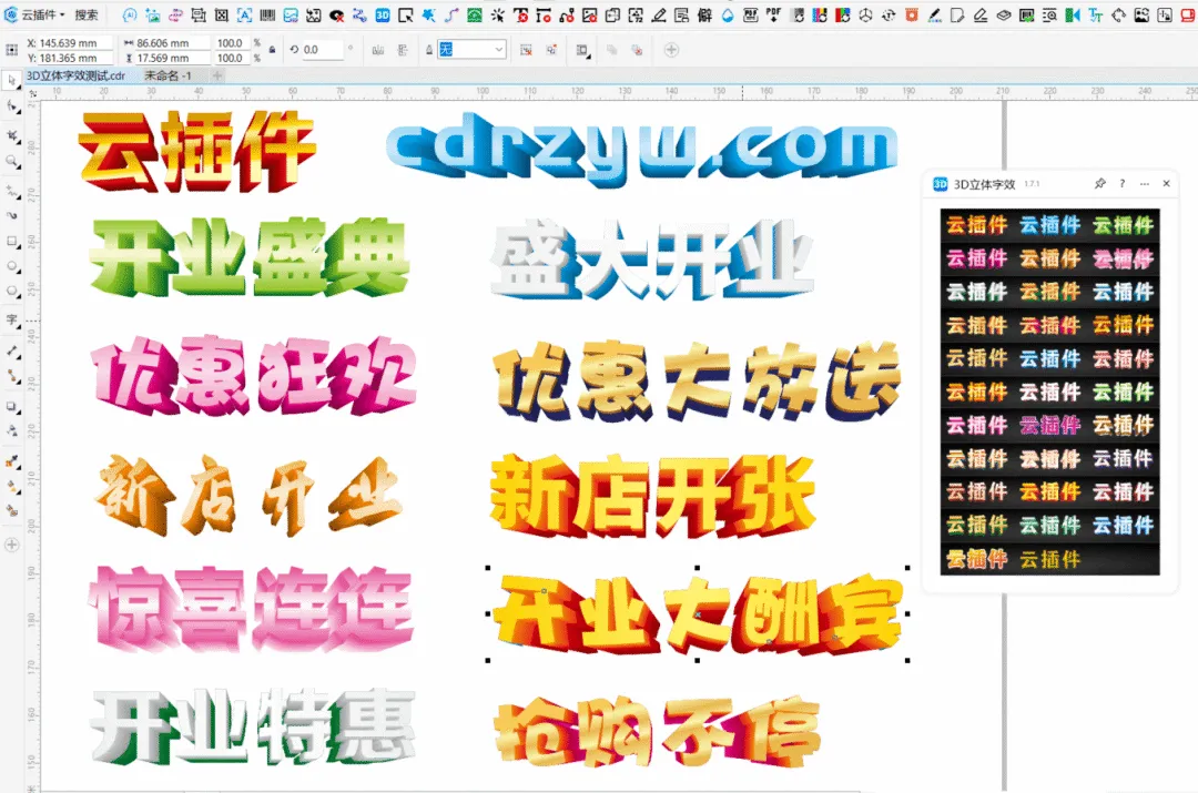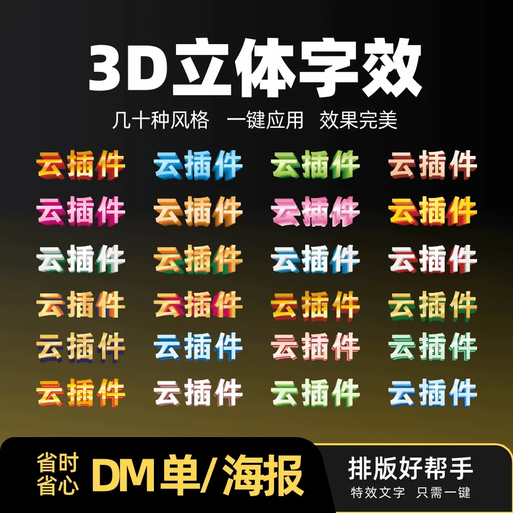 功能简介:一键生成常见的海报立体效果,快速生成3D特效字。无论您是平面设计师,还是DM宣传单排版的专业人士,这个功能都能为您提供极大的便利,所有效果均可一键生成,帮助你提升设计效率和质量。