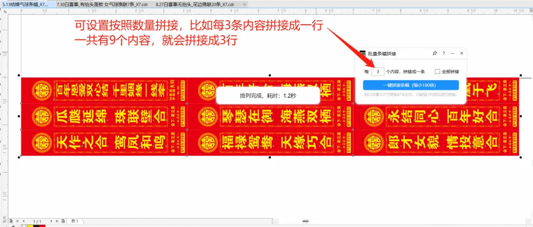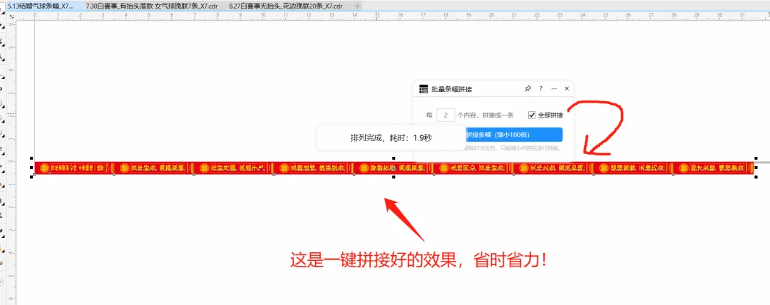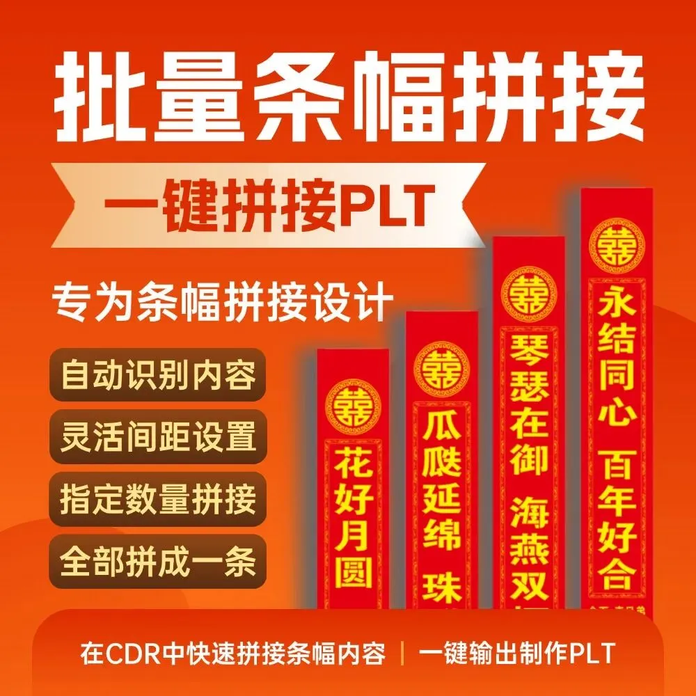 功能简介:该插件可实现将已经做好的条幅一键自动拼接、可指定拼接数量,按照一定的数量拼接,用于条幅PLT输出。