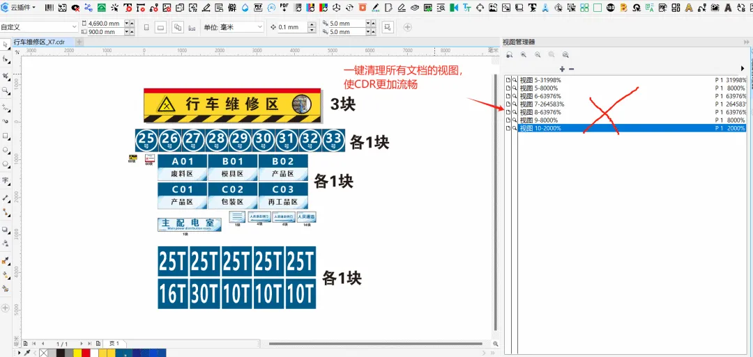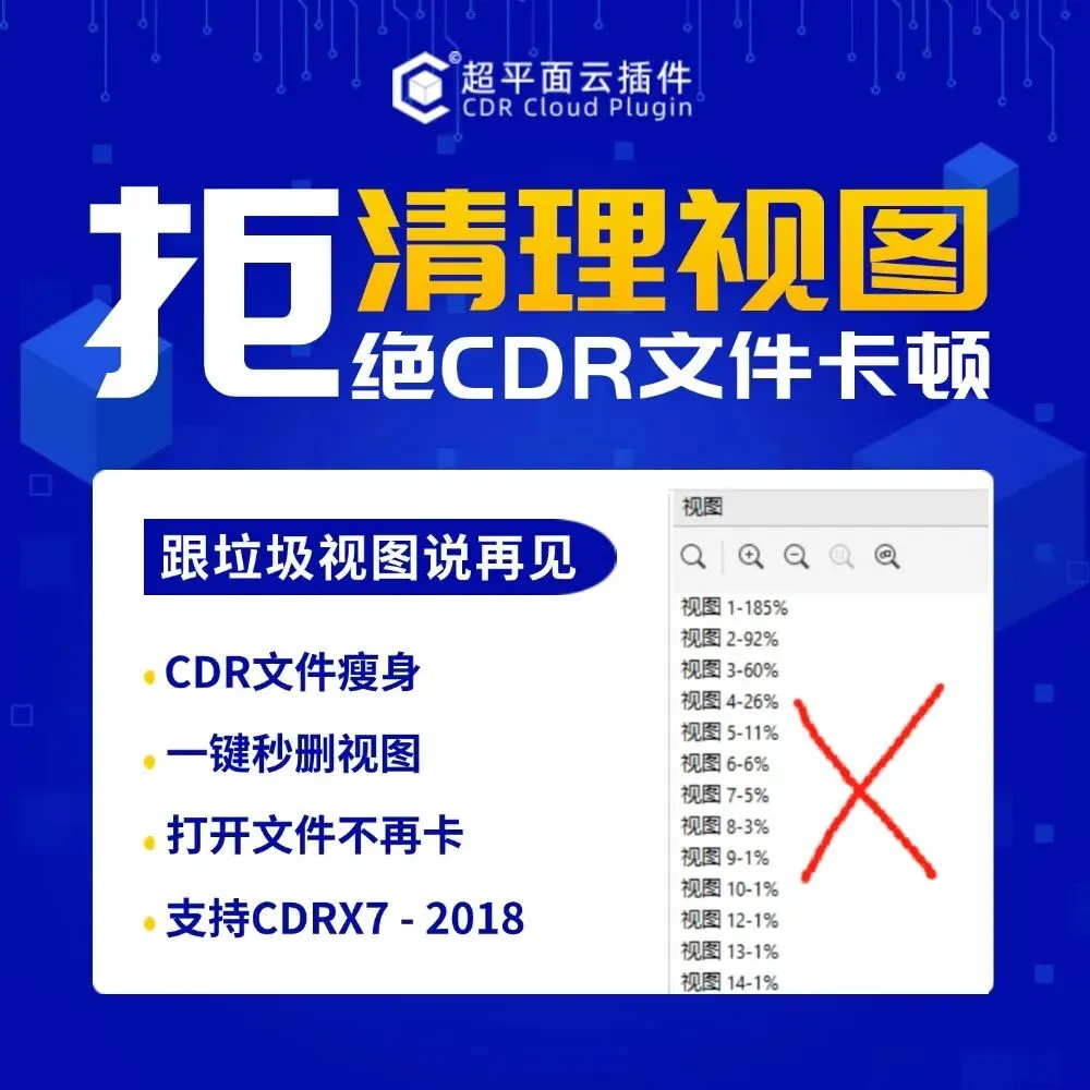 功能简介:该插件仅支持2018及以下版本,可一键清理CDR文档中视图,减少CDR文件大小,加快文件打开速度。已验证可正常使用的CDR版本:X7、2017、2018,可能会闪退的CDR版本:2019、2020、2021、2022、2023、2024、2025。