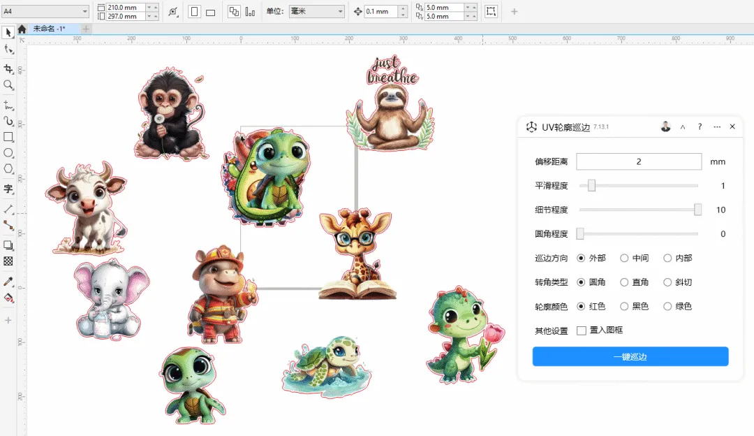 功能简介:此插件(原智能巡边)能够对图像和曲线图形进行智能化边缘检测,一键提取图像的轮廓,常用于UV轮廓加工提取刀线场景。
