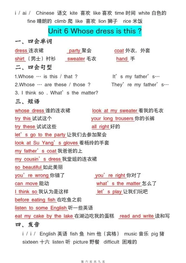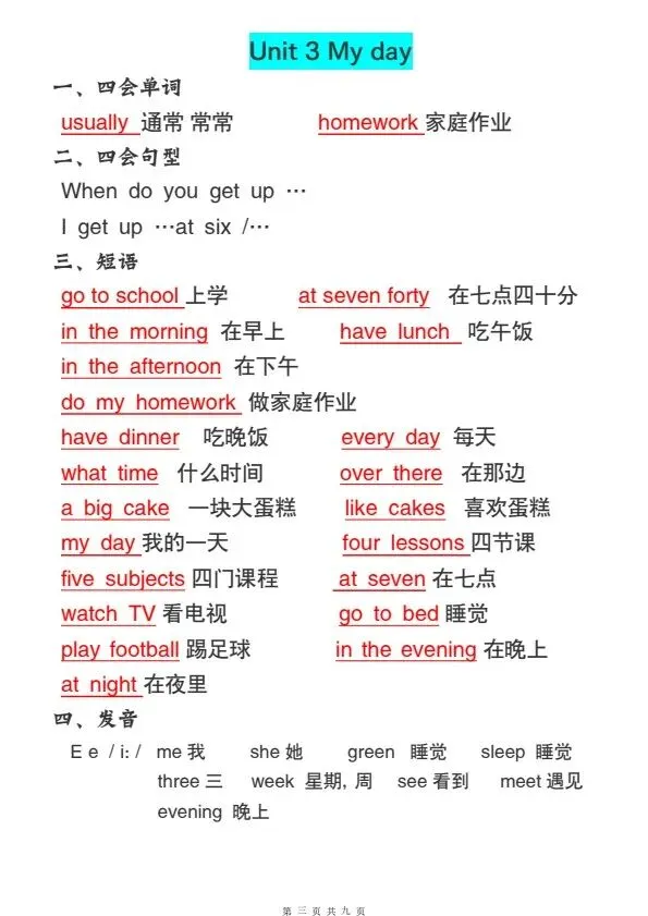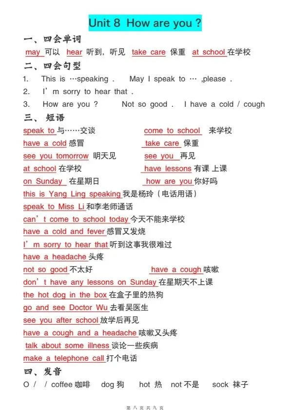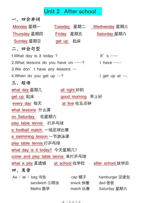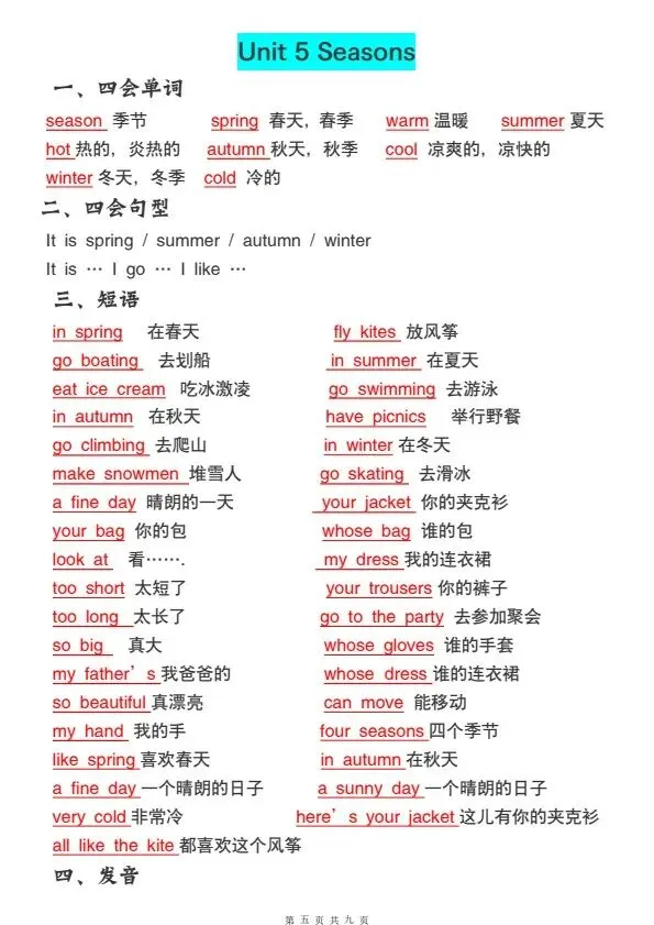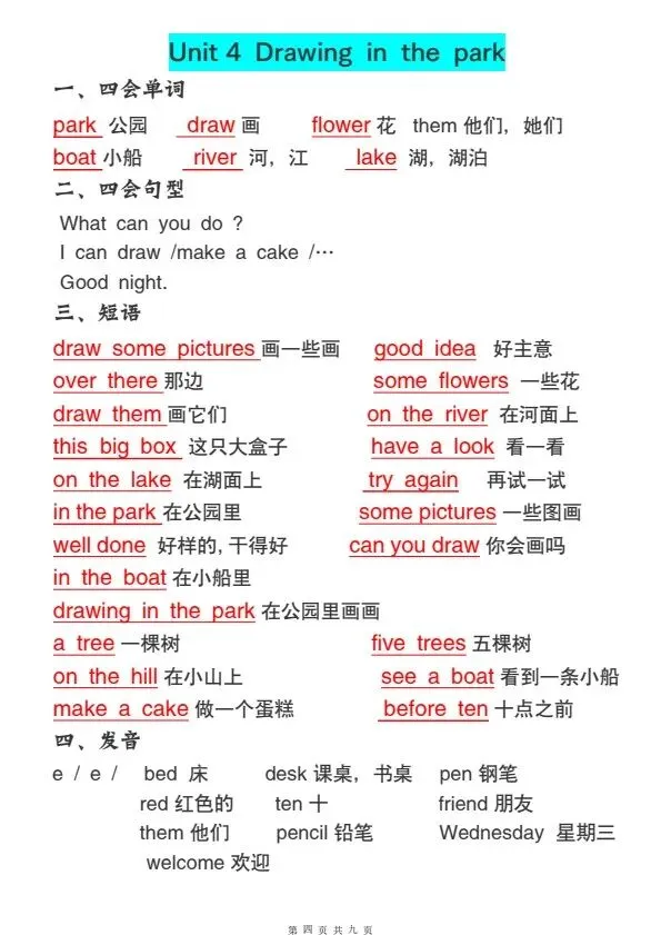 四年级下册译林版英语全册必背知识点(完整电子版可打印)