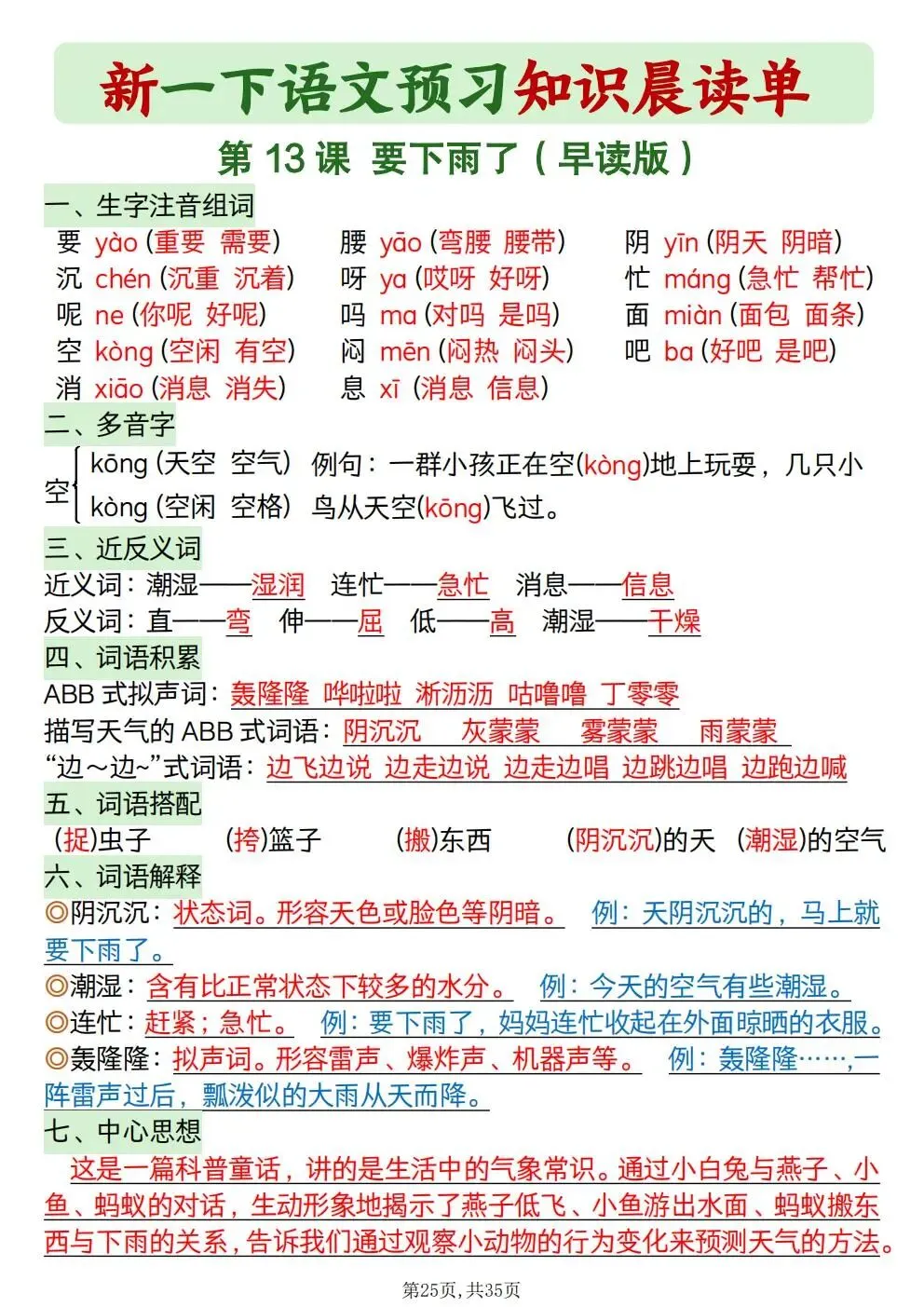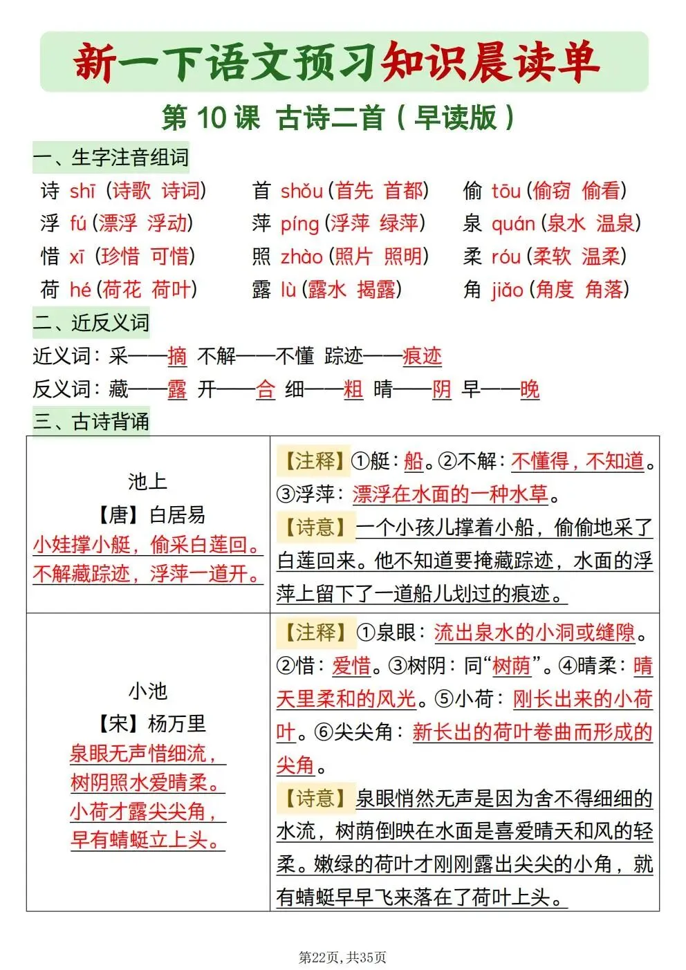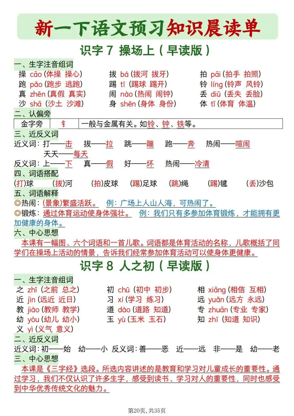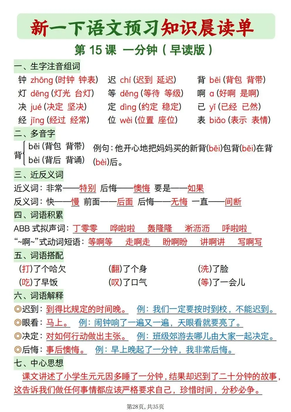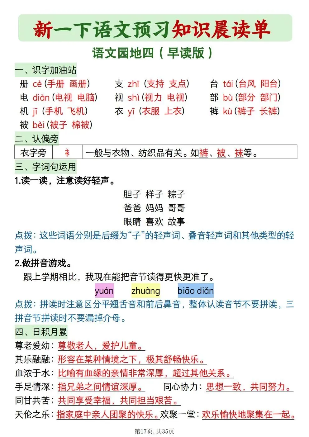 一年级下册语文知识晨读单(电子版可打印)