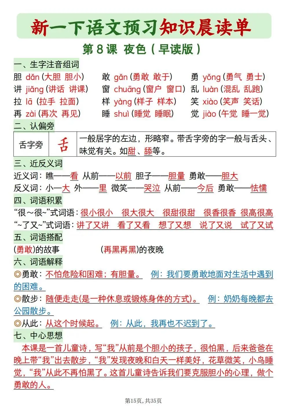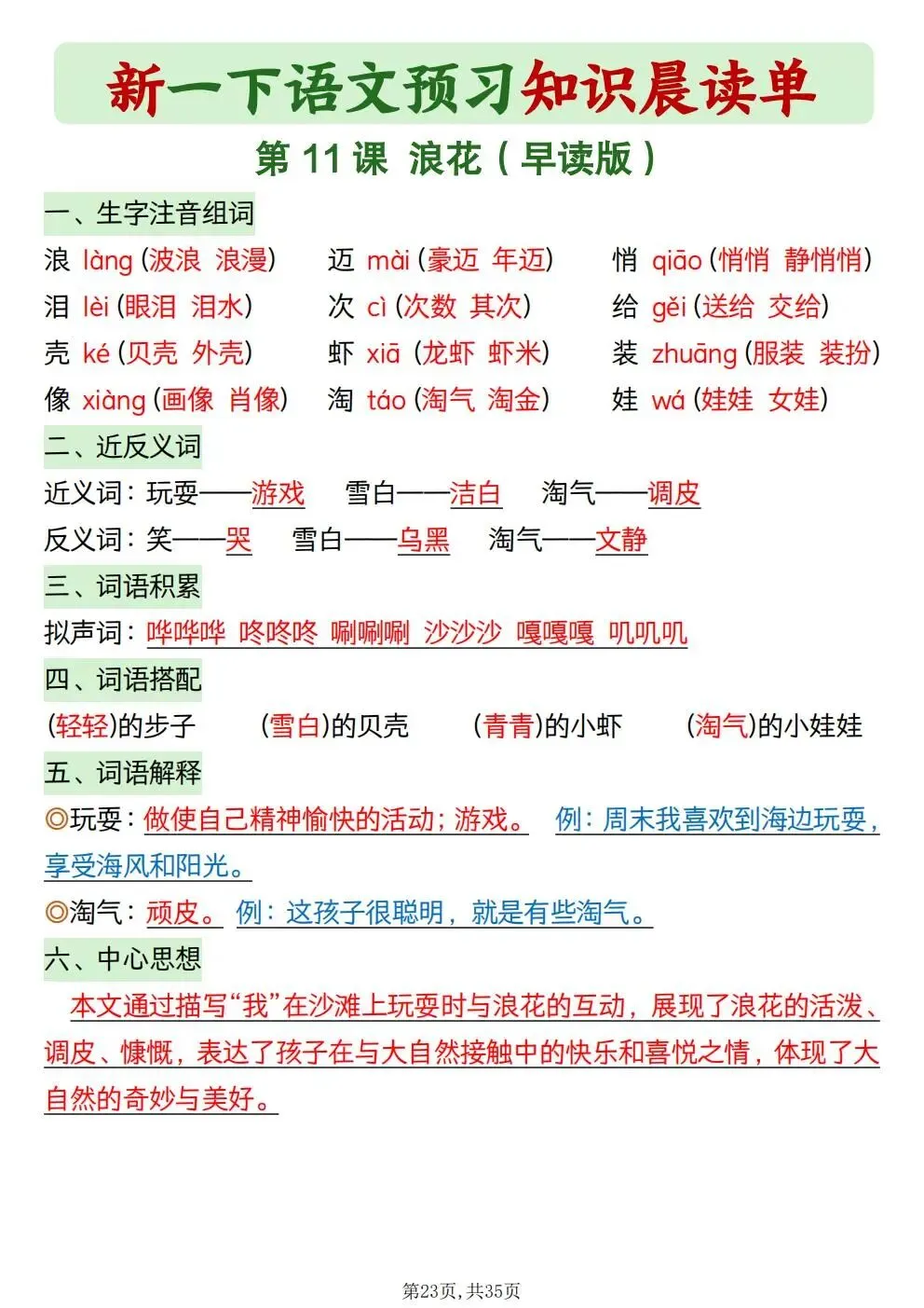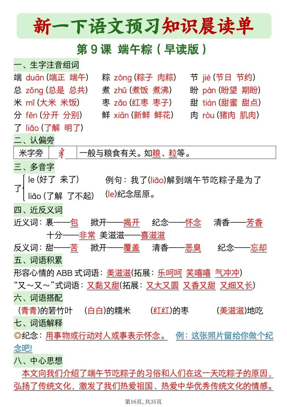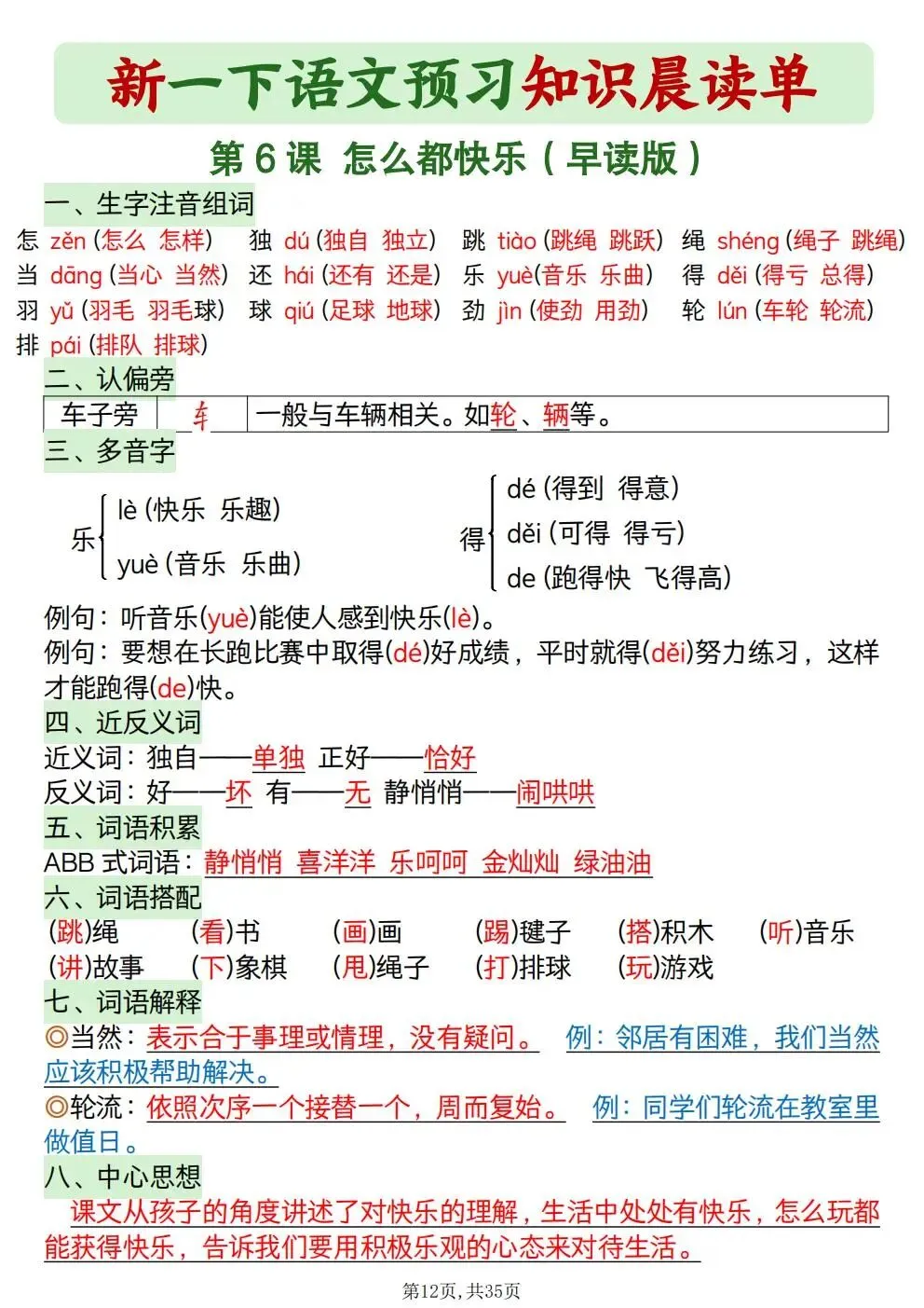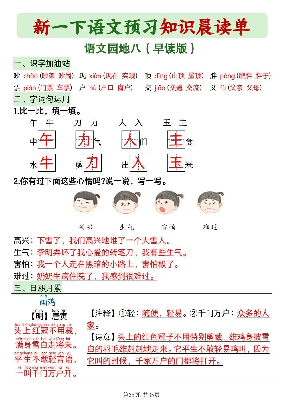 一年级下册语文知识晨读单(电子版可打印)