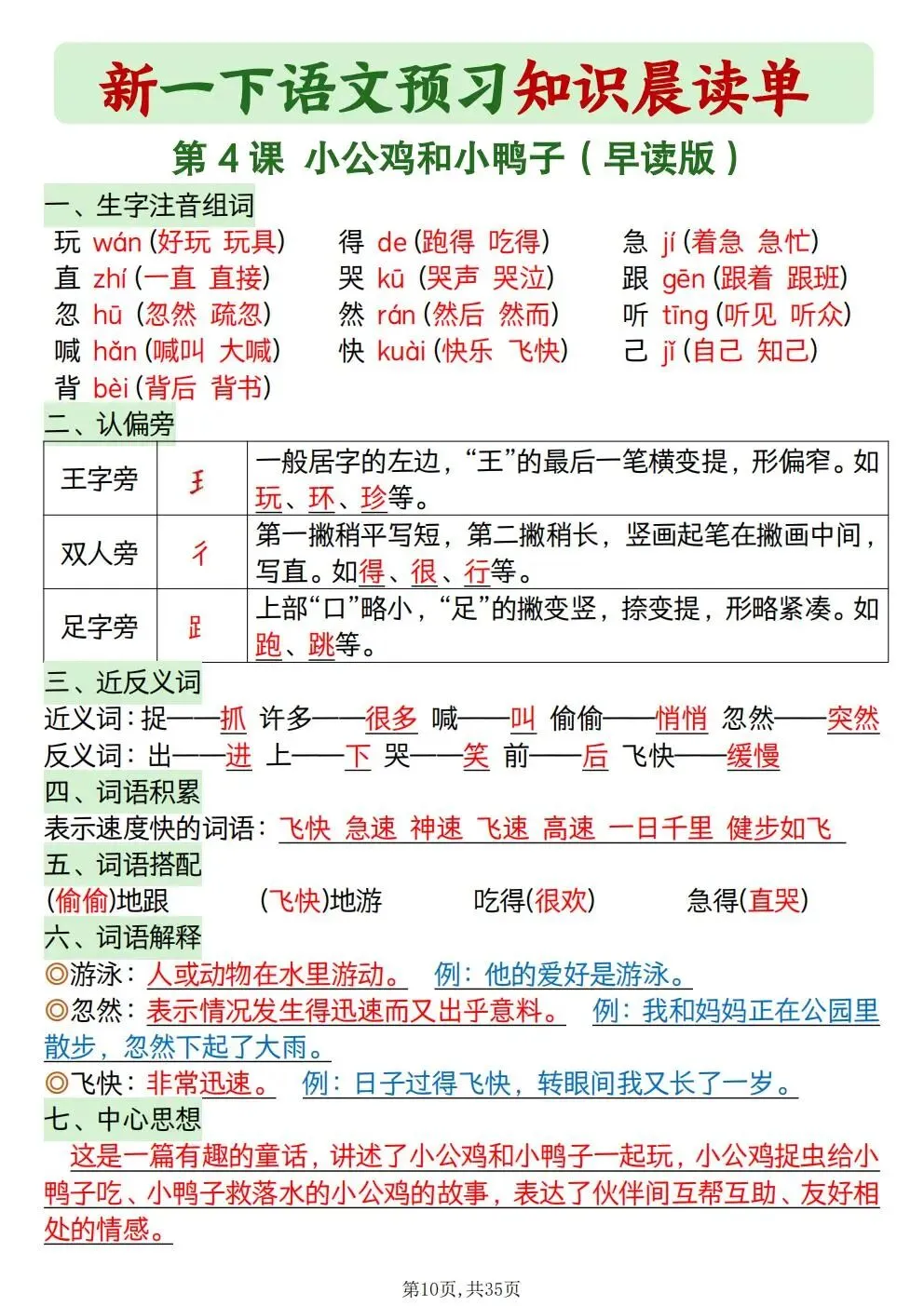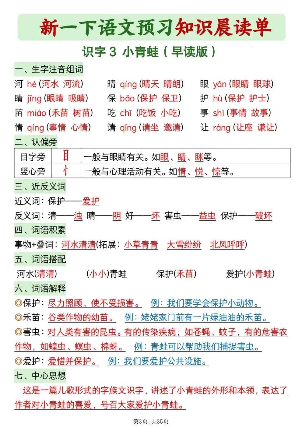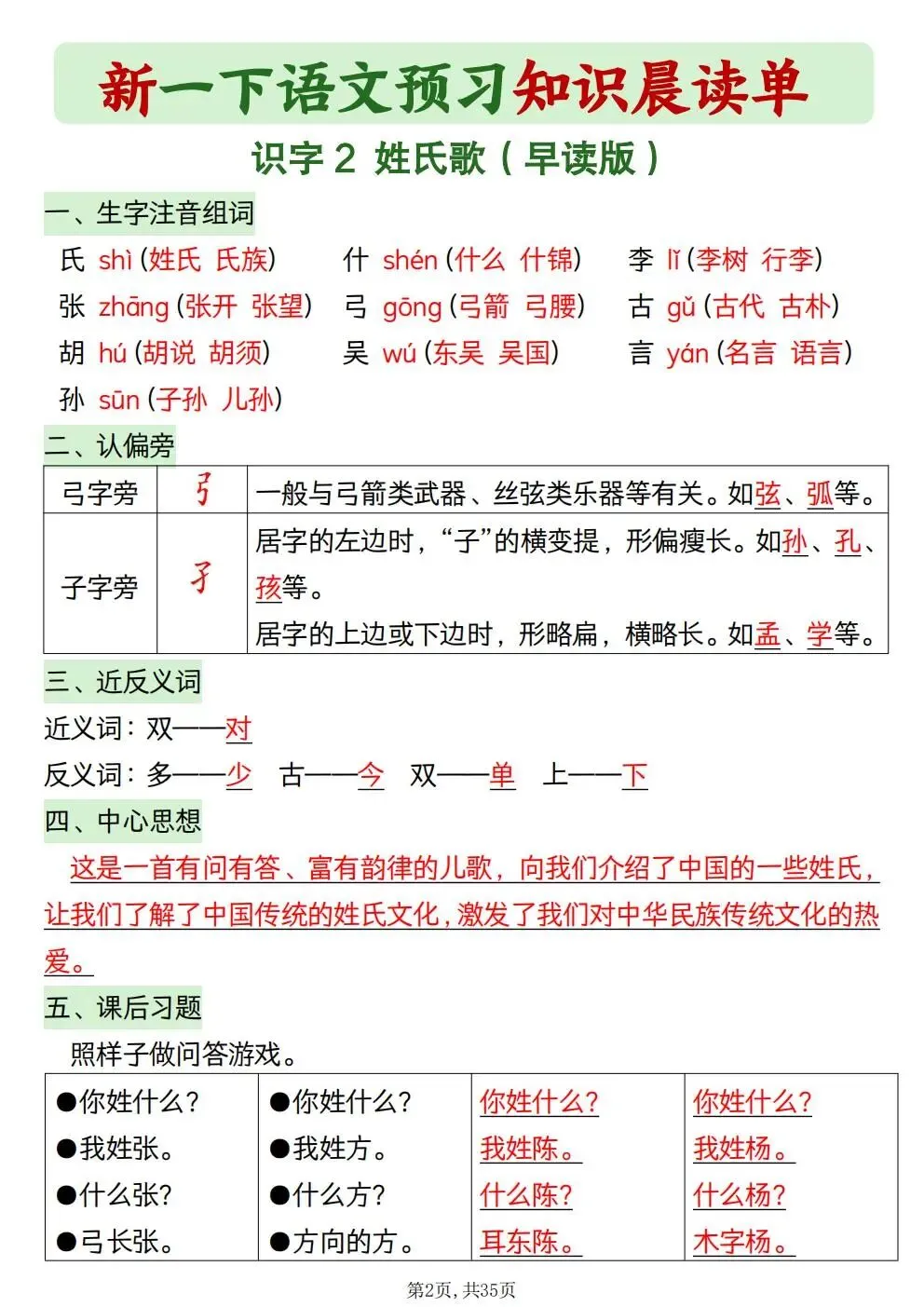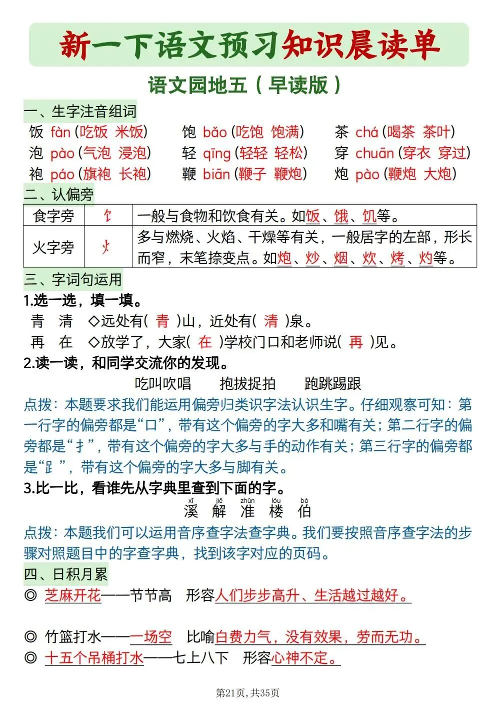 一年级下册语文知识晨读单(电子版可打印)