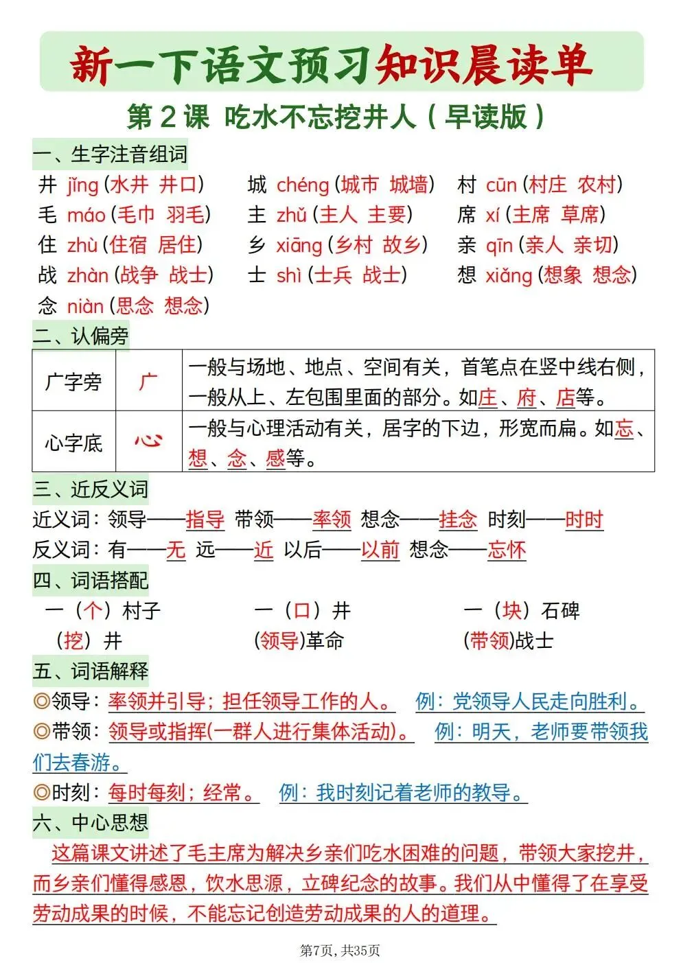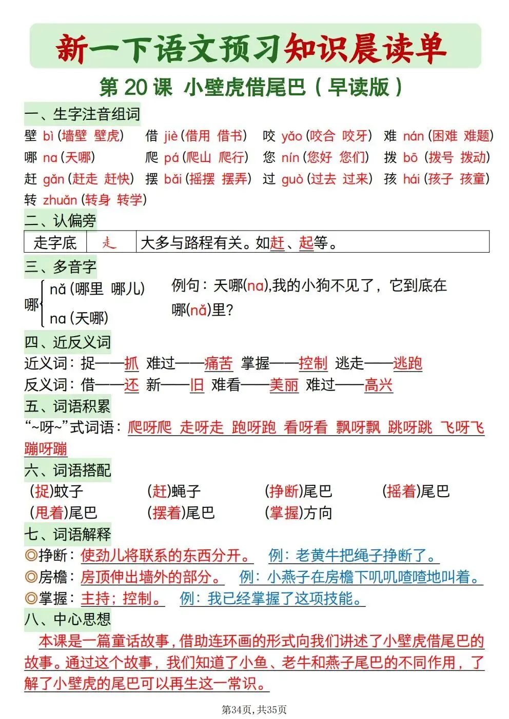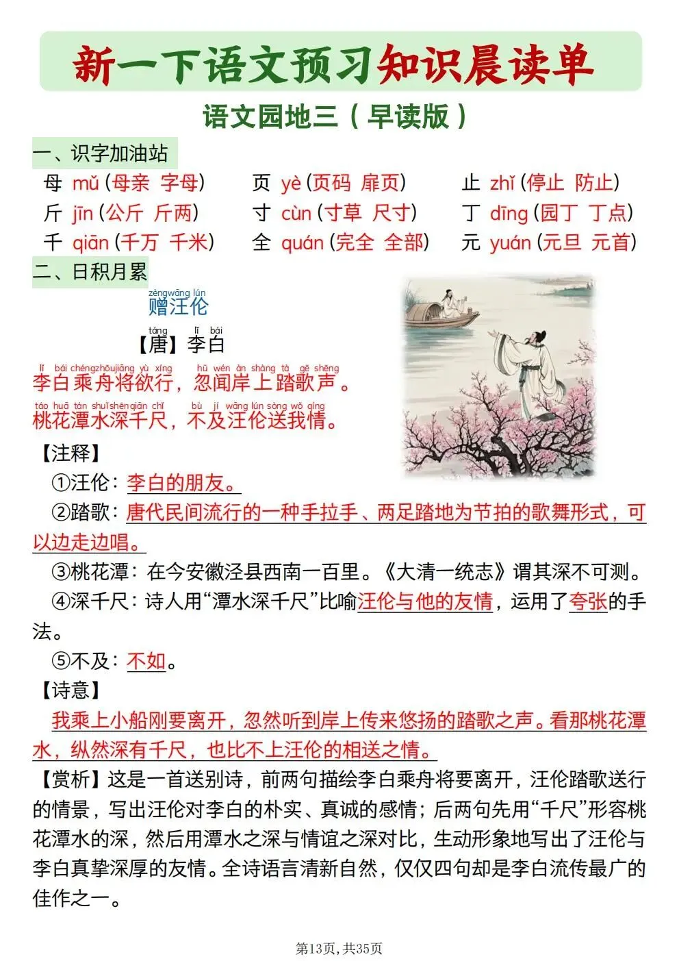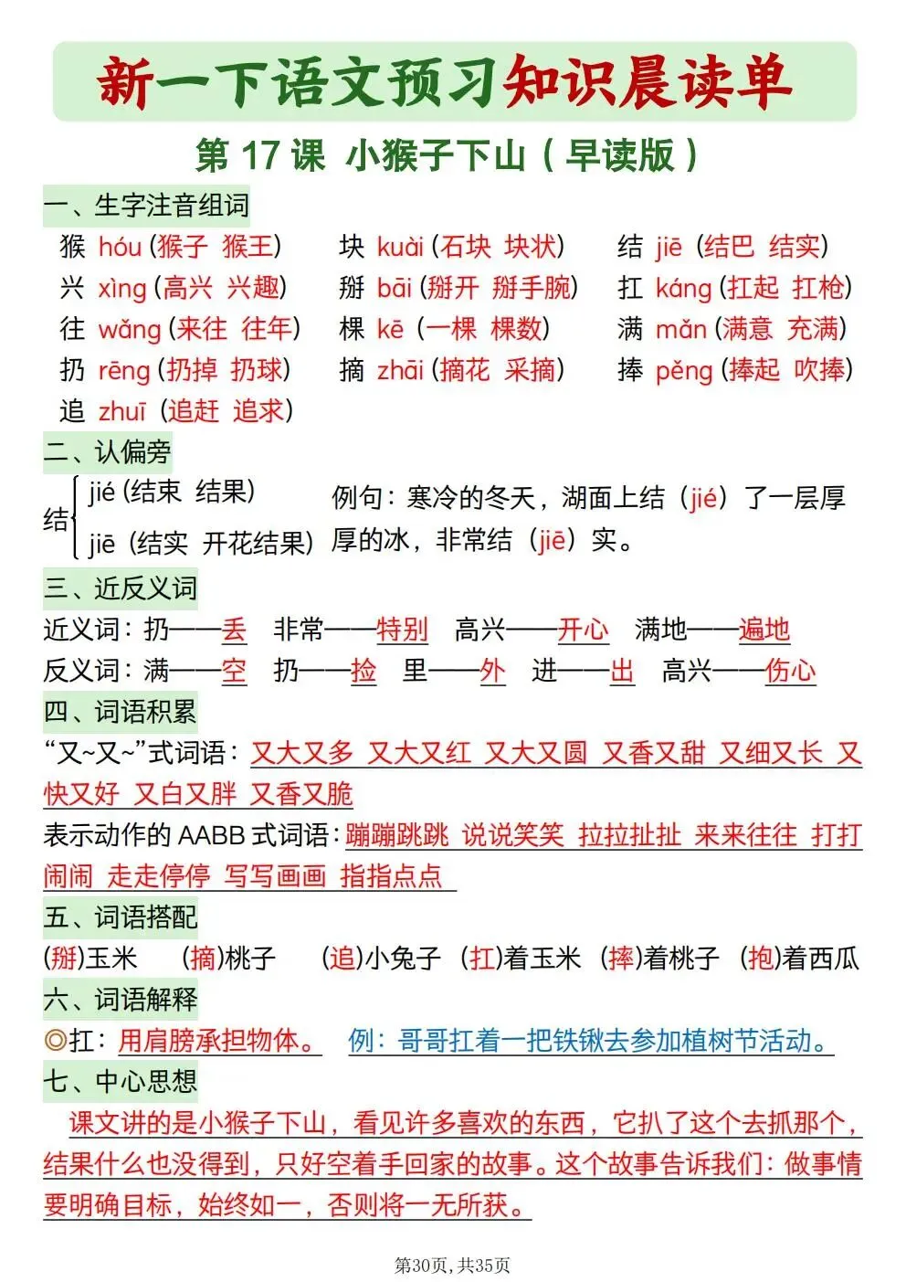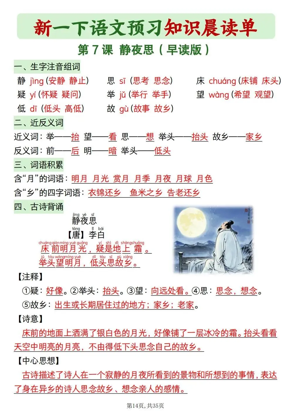 一年级下册语文知识晨读单(电子版可打印)