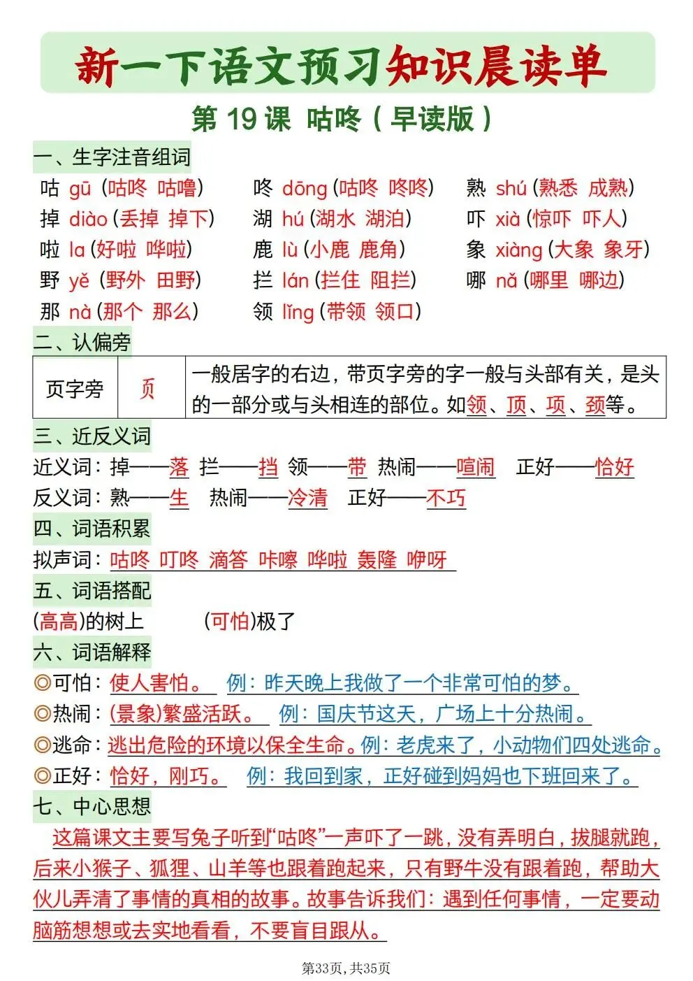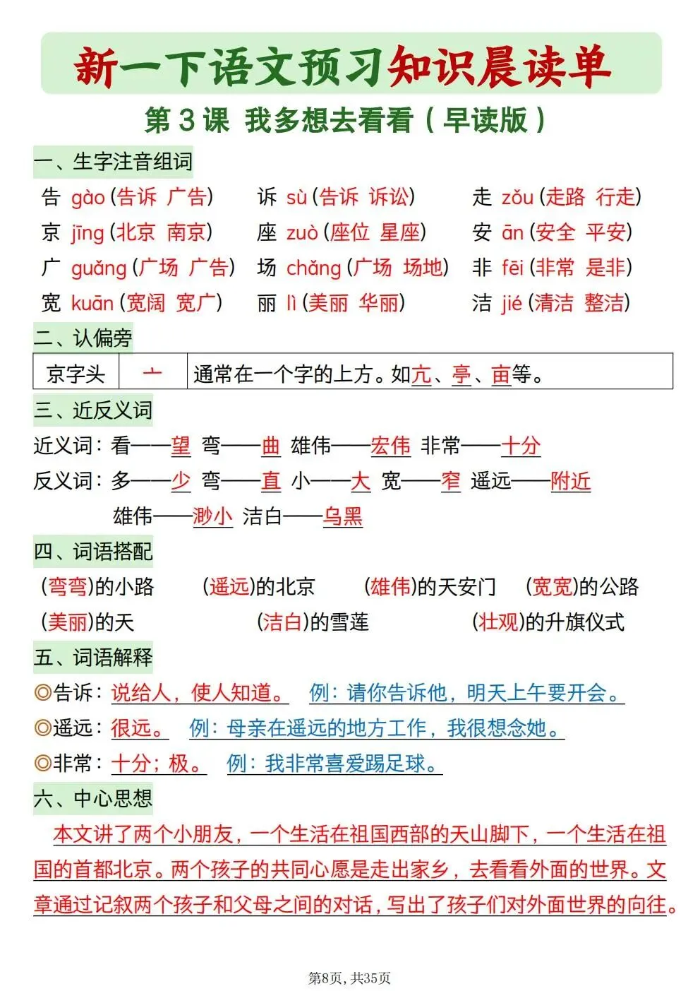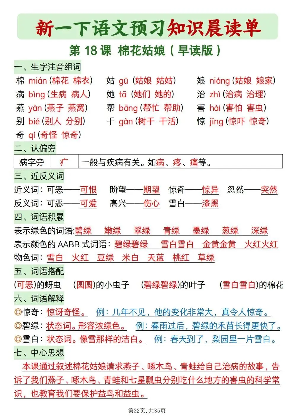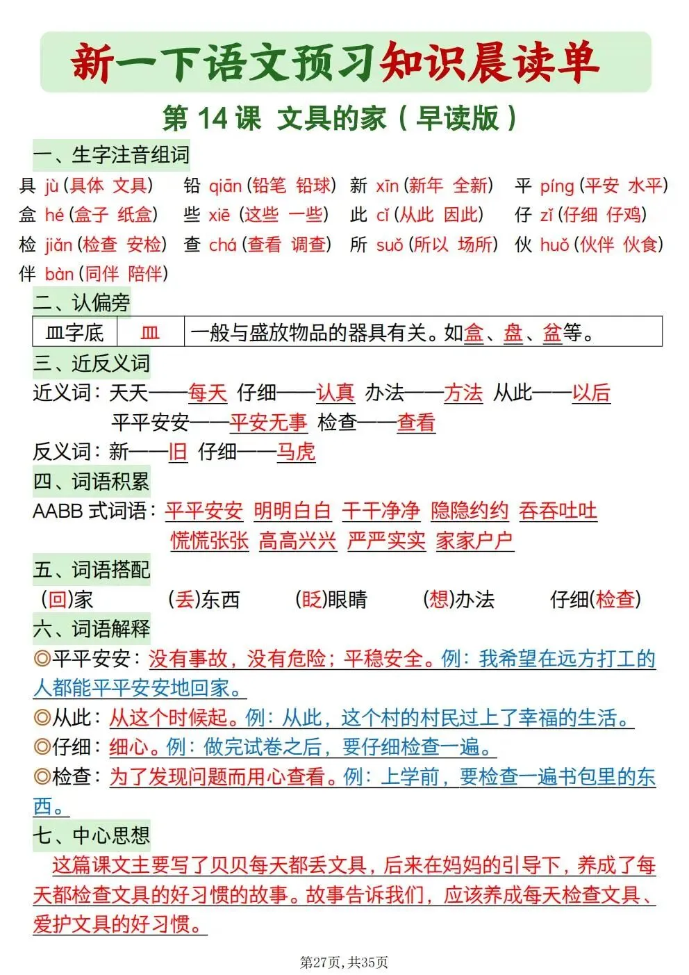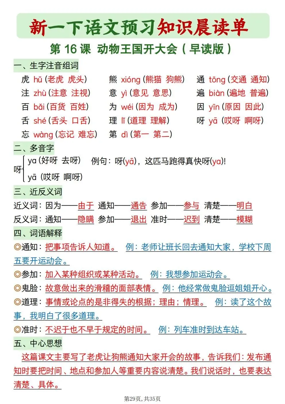 一年级下册语文知识晨读单(电子版可打印)
