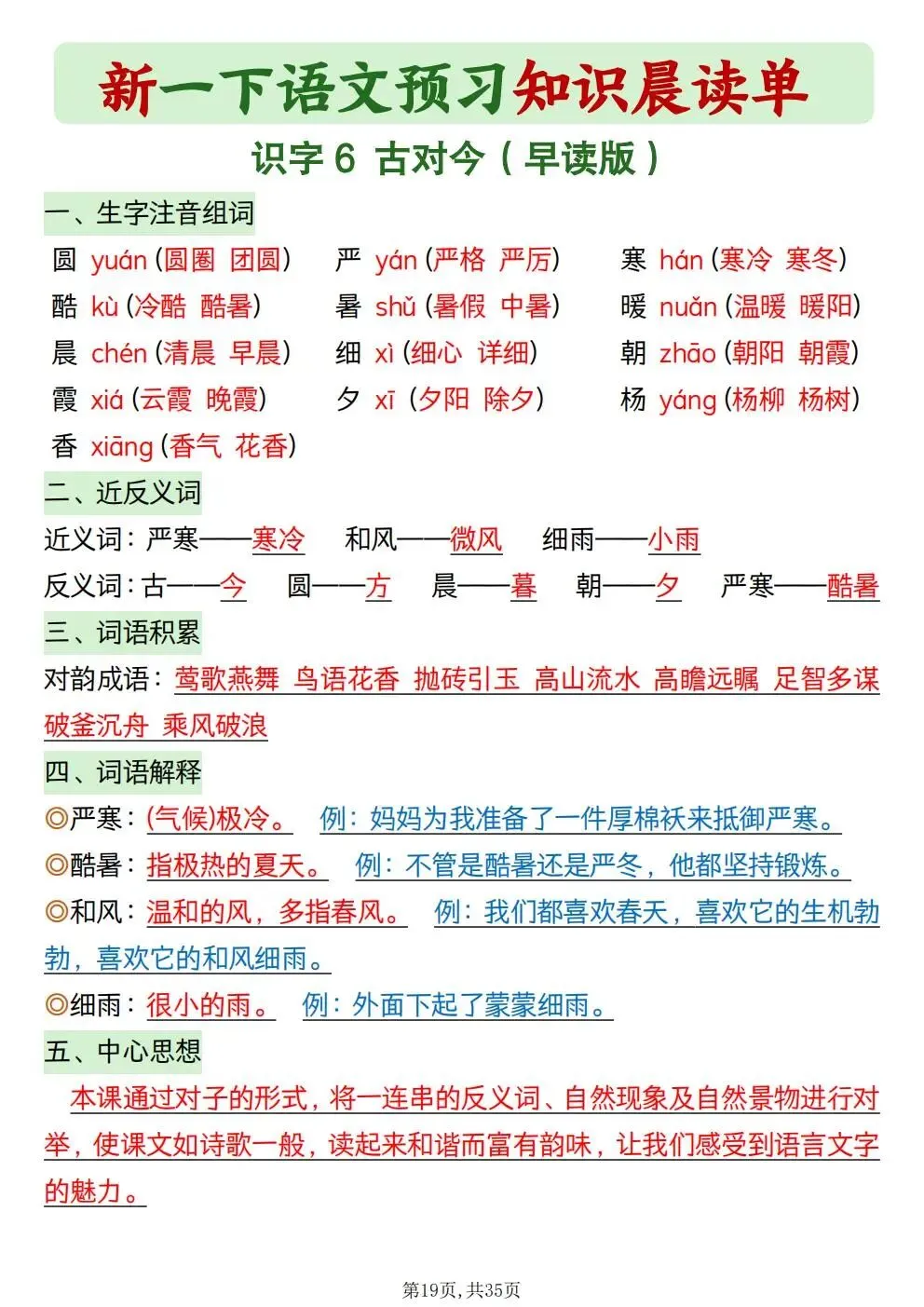 本站文章均为手工撰写未经允许谢绝转载:夜雨聆风 » 一年级下册语文知识晨读单(电子版可打印)