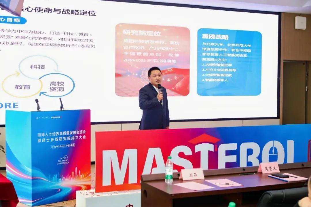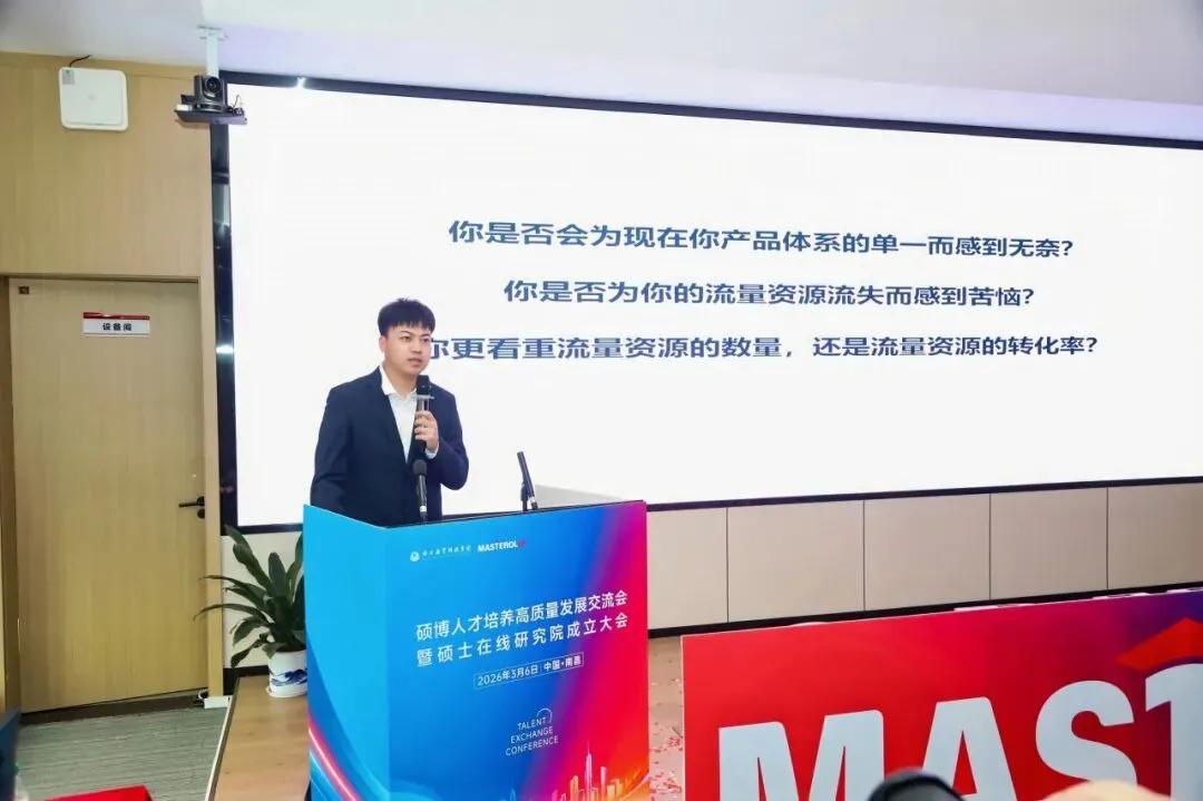 会上,硕士在线研究院正式成立。作为本次大会的重要成果,研究院将以“科技+教育+高校资源”为核心壁垒,致力于构建在职硕博教育全生态服务体系。博方教育科技集团董事长、硕士在线研究院院长王昂在发布《2026年硕士在线发展规划》时指出,面对教育数字化浪潮,研究院将以技术赋能为核心,通过自主研发的数字化平台,为合作伙伴打造持续创造价值的流量放大器,着力解决行业流量流失、转化率低等痛点问题。